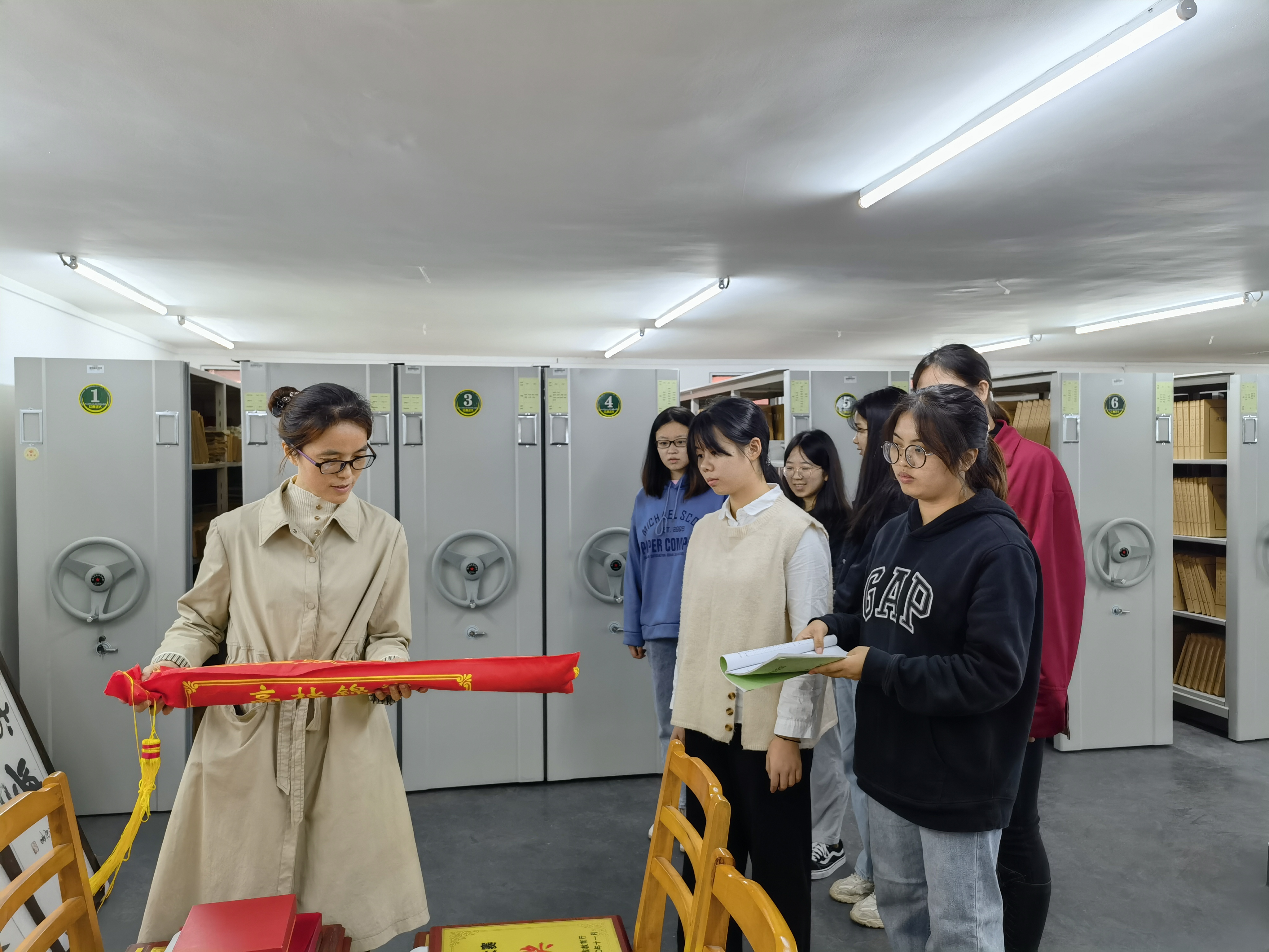 从2021年9月13日开始,档案馆迎接beat365秘书学专业2018及2020级学生来馆实习实训。馆长吴青霞带领同学们认真学习了最新的《干部人事档案管理条例》。