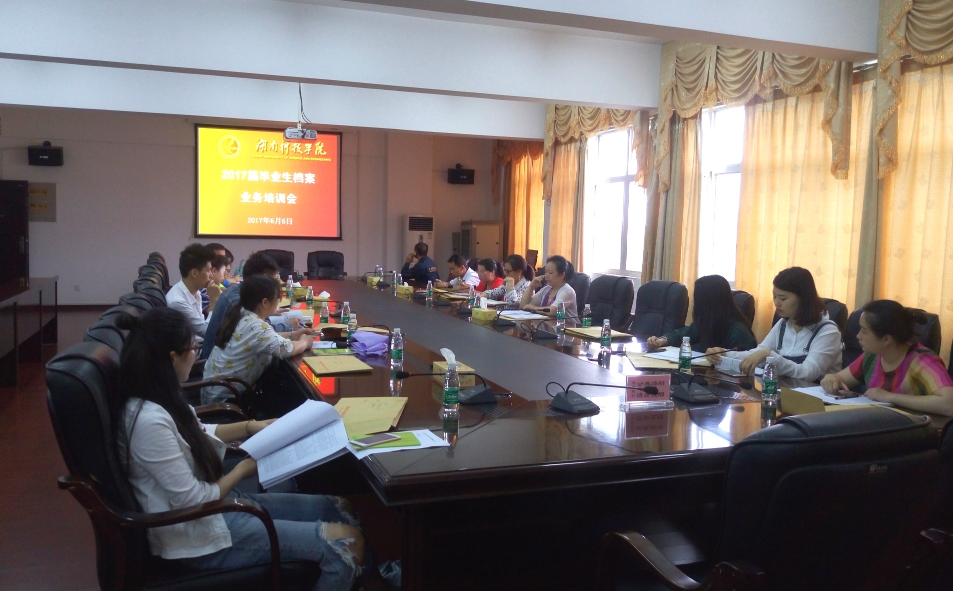 6月6日上午,档案馆在行政楼六楼会议室召开2017届毕业生档案业务培训会。2017届毕业生班的全体辅导员参加了此次培训。馆长吴青霞做了动员讲话,肯定了近年来毕业生档案工作取得的成绩,对做好2017届毕业生档案工作提出了更规范、更具体的要求。学生档案管理员刘海燕对毕业生档案的收集、审核、整理、装袋和邮寄转递等作了详细指导。