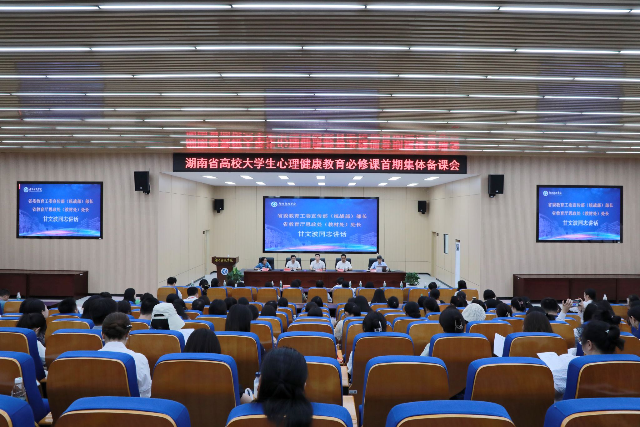 本网讯(通讯员 邓玉 向薛峰)7月5日,2024年湖南省高校大学生心理健康教育必修课首期集体备课会在beat365明德楼100报告厅开班,湖南省委教育工委宣传部部长、湖南省教育厅思政处处长甘文波,校长黄创霞,浙江大学教授、博士生导师、国家万人计划教学名师马建青,中南大学教授、博士生导师胡凯等领导和专家出席,来自全省高校的149位心理健康教育课程教师参加会议。开班式由校党委委员、副校长吴小林主持。