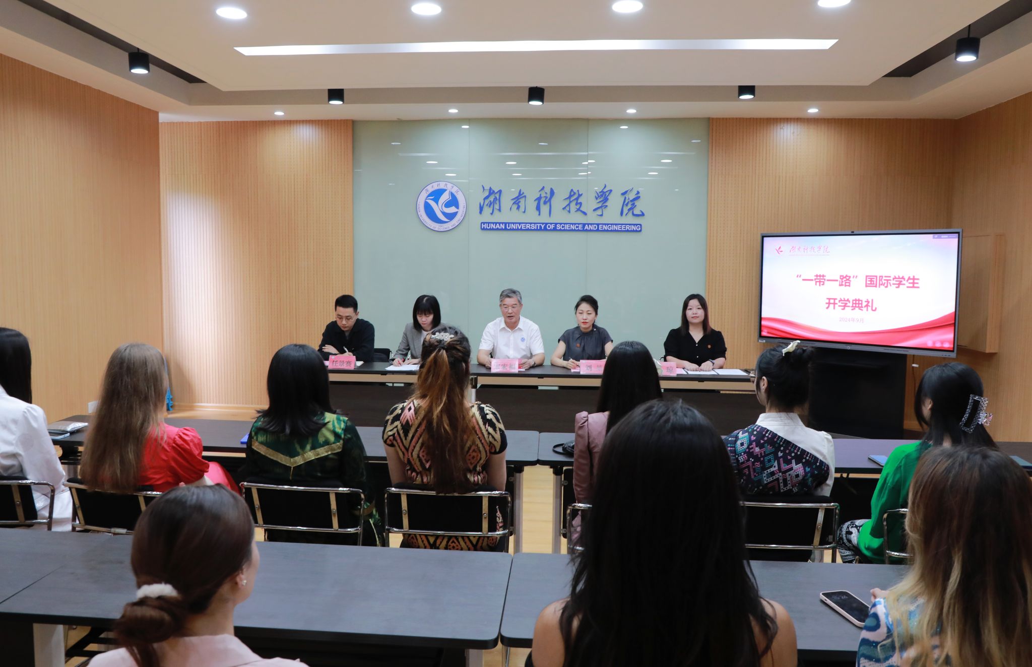 本网讯(通讯员 任景赛)9月25日,学校举行2024年秋季国际学生开学典礼。来自俄罗斯等9个国家的国际学生齐聚湘科院,开启人生的崭新篇章。校党委副书记宋宏福出席典礼,国际教育学院全体师生参加了开学典礼。