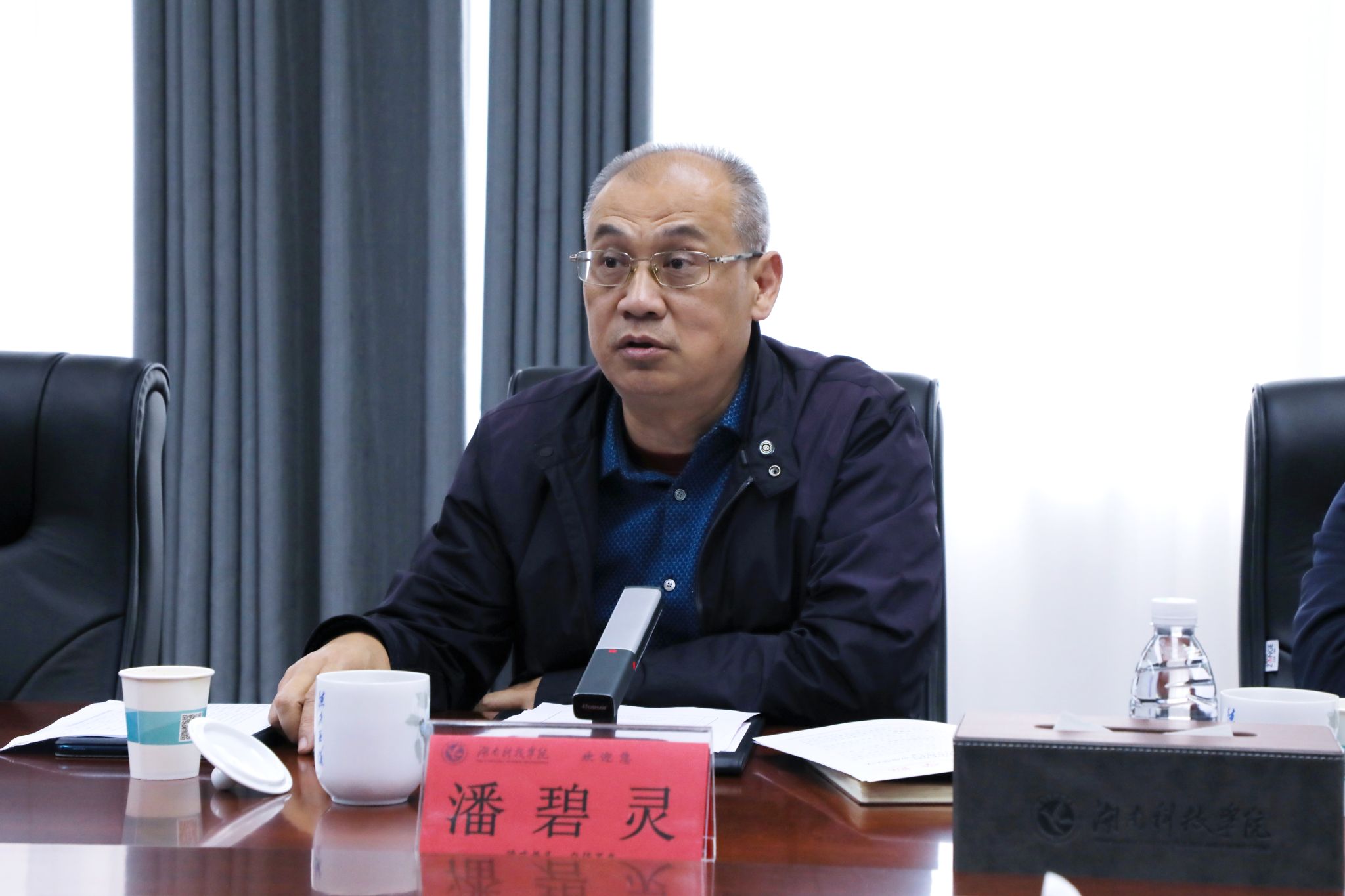 本网讯(记者 向薛峰 唐晶 刘斌 摄影 谢志豪)11月21日,湖南省政协副主席、民进湖南省委会主委潘碧灵,省委统战部党派处处长汤国旺,民进湖南省委会组织处处长周莉一行来校考察调研,并进行座谈交流。永州市委统战部常务副部长、一级调研员邓晓明,民进永州市委会主委、永州市市场监督管理局局长陈丽萍等人参加。校党委书记李钢,党委副书记宋宏福,省政协委员、永州市政协常委、学校民进支部主委、外国语学院院长何丽萍等陪同调研。座谈会由宋宏福主持。
