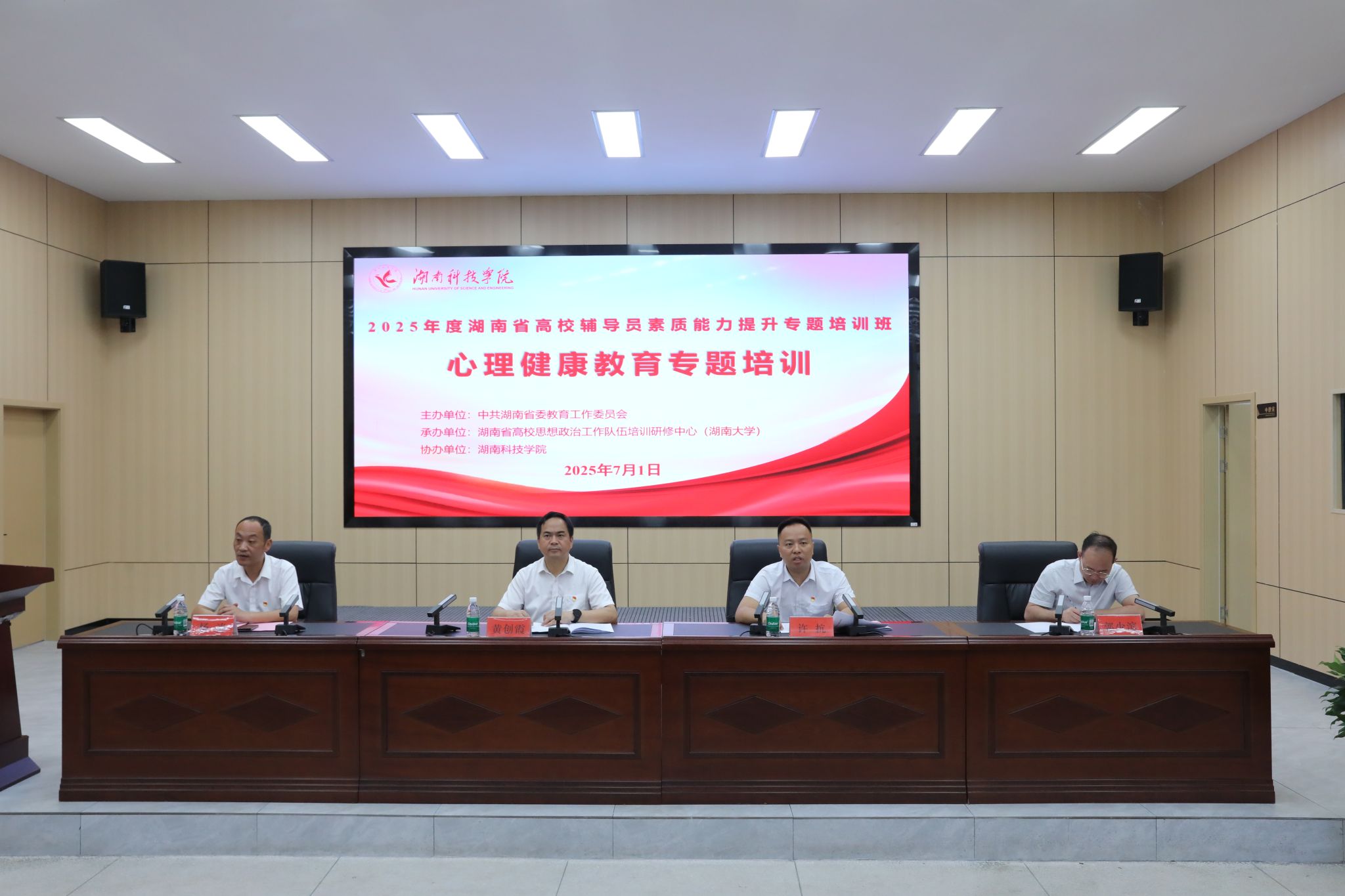 本网讯(通讯员 蔡彦婷)7月1日上午,2025年度湖南省普通高校辅导员心理健康教育专题培训班在beat365举行。湖南省委教育工委宣传部部长、湖南省教育厅思政处处长许抗,校党委副书记、校长黄创霞,湖南大学党委学生工作部副部长郭少滨出席开班仪式。仪式由校党委委员、组织部部长杨涛主持。