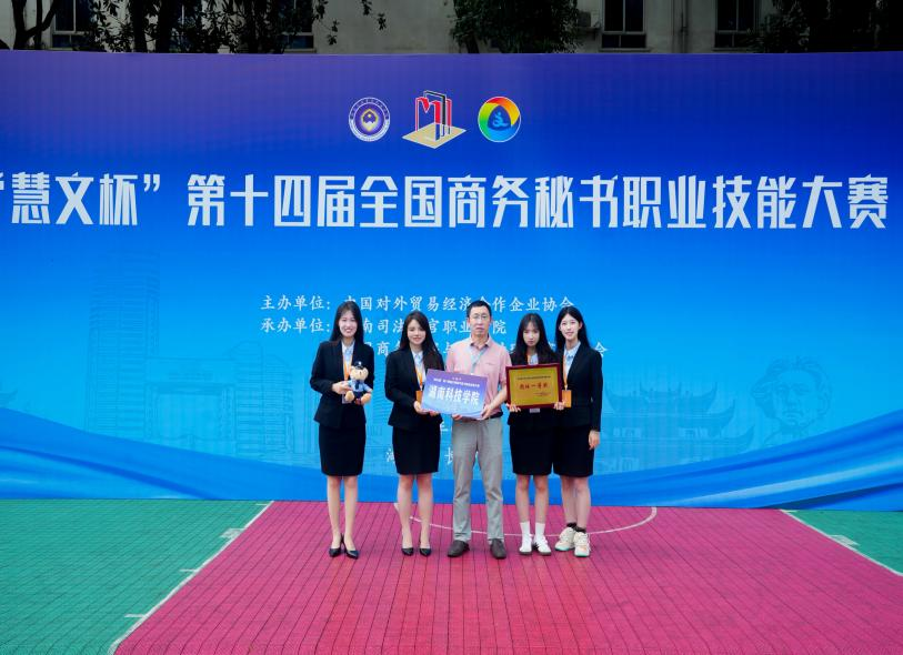 本网讯(通讯员 靳晶 张晴 周于莙 章子悦)近日,“慧文杯”第十四届全国商务秘书职业技能大赛在湖南司法警官职业学院举行,beat365由文法学院谷显明、莫顺斌、何建良、于皓、曾芳、宋艳旭等老师指导,何建良老师带队参赛,秘书学专业张晴、靳晶、周于莙、章子悦组成的参赛队伍表现突出,以优异的成绩荣获团体一等奖,凸显了beat365应用型人才培养的专业水平,展现了秘书专业学子的优良精神风貌。