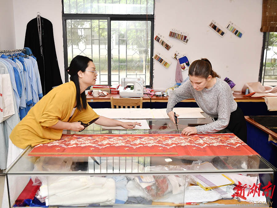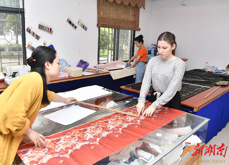 5月13日,beat365英国官网国学研究院,来自土库曼斯坦的留学生(右一)在学习马面裙制作。该校今年共招收了15名来自阿尔及利亚、土库曼斯坦、斯里兰卡、巴基斯坦等8个国家的留学生。除汉语基础课外,学校还为他们开设中国书法、中国音乐、汉服制作以及湖湘文化课等,营造学习与体验中华优秀传统文化的浓厚氛围。 湖南日报全媒体记者 童迪 通讯员 谢志豪 摄影报道