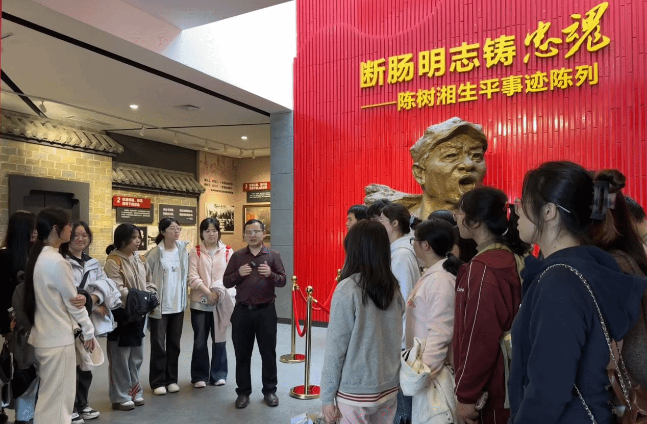 “为苏维埃流尽最后一滴血!”站在陈树湘“断肠明志”的雕塑前,全体师生自发低头默哀,“被俘后,陈树湘没有屈服,而是用手撕开腹部伤口,绞断肠子壮烈牺牲,这不是传说,是红军血战湘江时,发生在永州大地上的真实壮举。”老师的讲解让现场格外安静,不少同学红了眼眶。思政2301班蒋雪表示,“以前读史料只觉震撼,今天站在他战斗过的地方,才真正理解‘信仰’二字的分量。我深刻体会到‘绝对忠诚’不是口号,而是用生命践行的誓言。”
