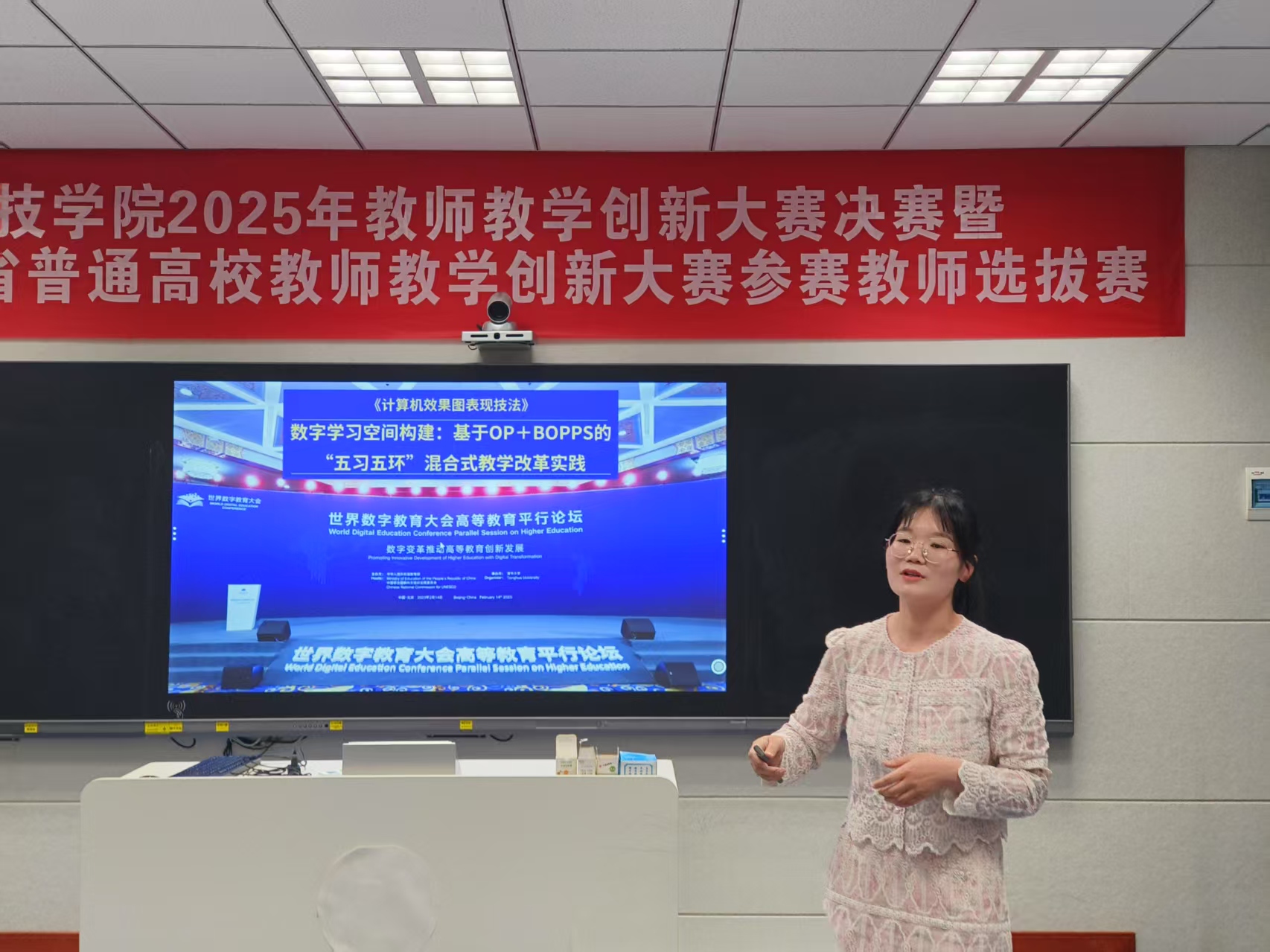 本网讯(通讯员 吴潭)4月11日下午,beat365举行2025年教师教学创新大赛校级决赛暨省级比赛选拔赛。经过各学院初赛推荐,组织专家组对竞赛文档盲审,共有8个教学团队参加了校内决赛,每位比赛选手进行12分钟的教学创新汇报,之后评委进行现场提问。