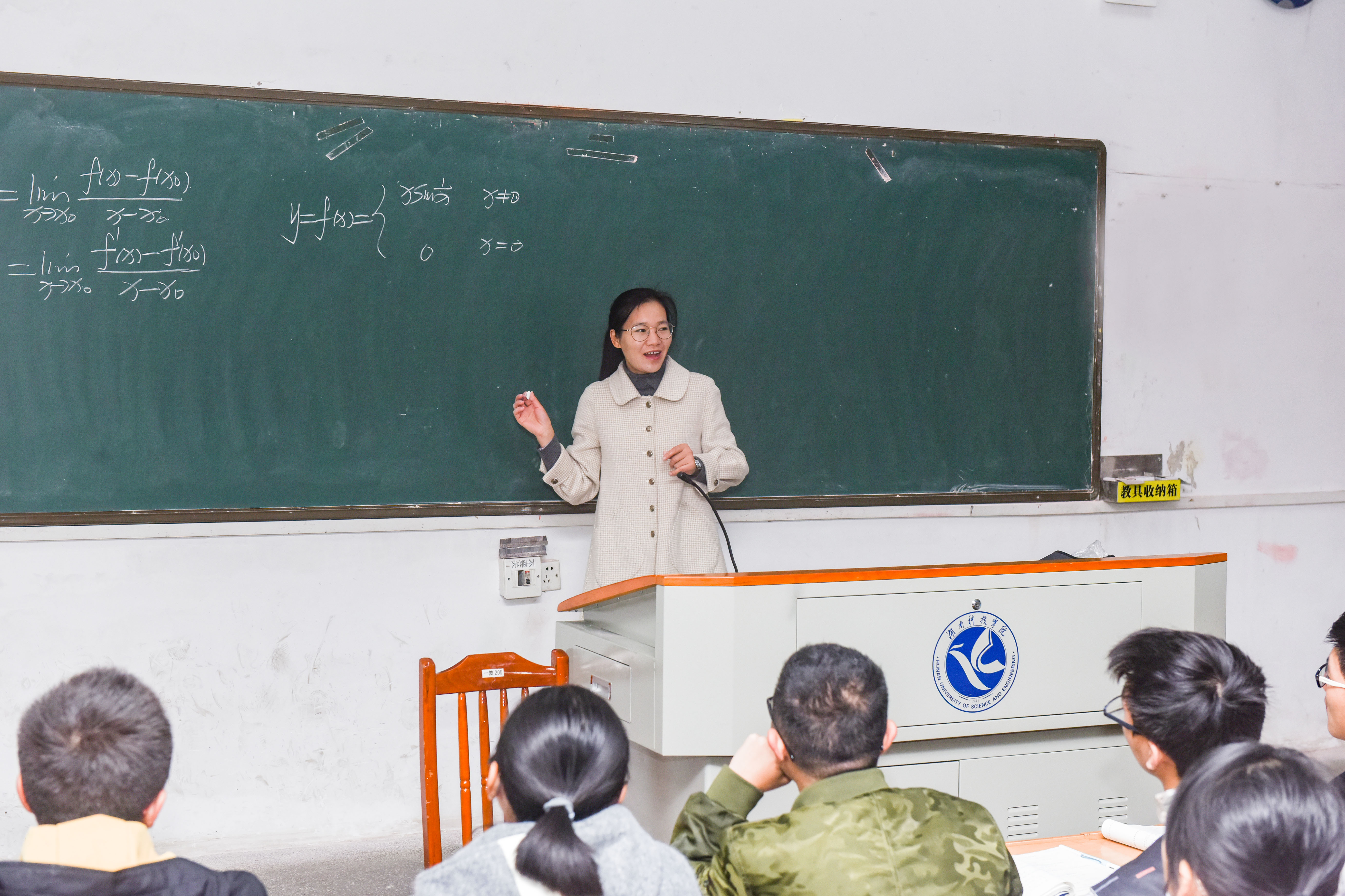 三尺讲台上,廖春艳兢兢业业工作了八载,教学的不断创新和完善,使她收获诸多成绩,同时她独特的人格魅力也一直感染着每一位学生。课堂上,她会采用慕课、微课、研讨式教学等不同形式,充分发挥课程思政的功能,让小组间互相进行讨论辩驳,最后她再进行分析和总结。由于数学课程的理论性、抽象性很强,为提高学生的学习积极性,她常引用故事或生活中的常见现象作为课堂切入点。她认为,“数学来源于生活又用于生活,数学学习不能流于形式,而要深入地学。”在上课过程中,廖春艳通常会引导学生建立起探索问题的兴趣,再通过图文结合的多媒体软件和板书教学形式对内容进行进一步演示,让学生对问题层层深入理解。数学的严谨性造就她严格的教学态度,在专业学习这件事情上,她一直是严格的。“廖老师上课是面面俱到的,她不允许任何人做与课堂无关的事情,在她的严格要求下,每一节课我们都受益匪浅。”信计1702程彭伟夸赞道。“我希望我的学生在大学里不要做随波追流的浮萍,认真待事,努力学习,并把这种认真的态度延续到今后的生活里。”这一句感慨的背后,体现的是她对学生的殷切企盼和深厚关爱