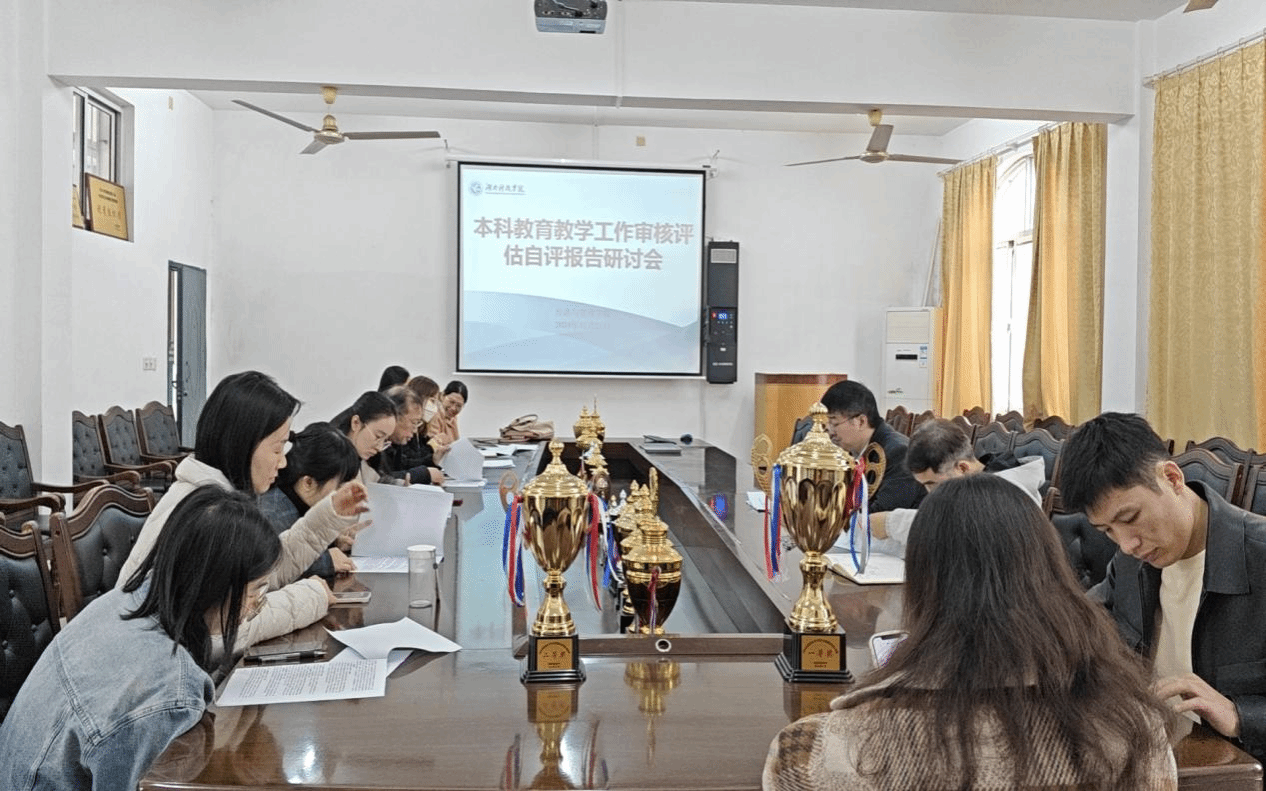 2024年11月21日上午10点,学院在立信楼213会议室召开了本科教育教学工作审核评估自评报告研讨会,会议由周芳检院长主持,院领导及各系主任、教务办主任参加了此次会议。