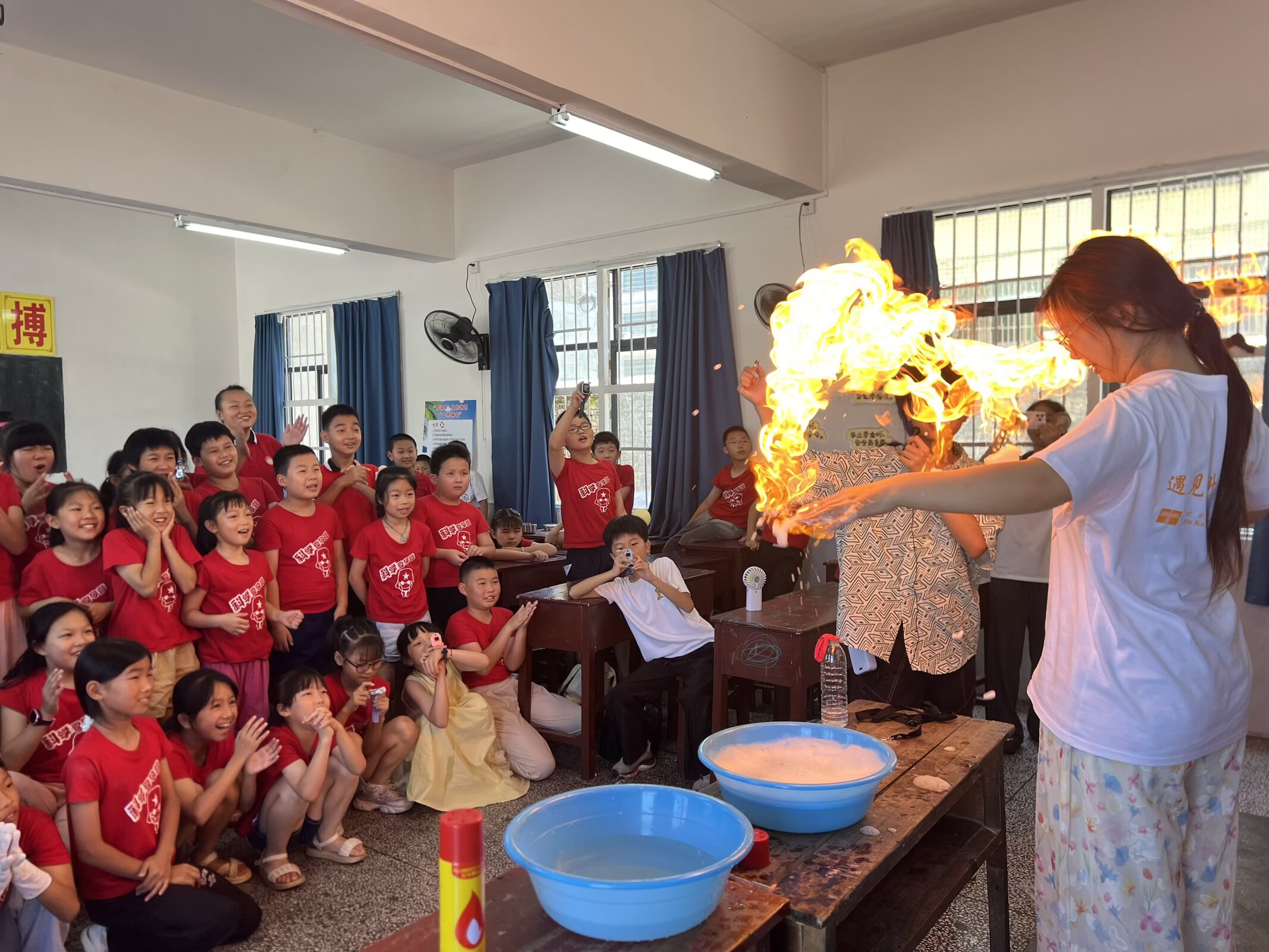 科普夏令营的活动设计均来源于日常生活,包含探索水果电池与安全用电、水滴净化实验与防溺水安全教育、气泡熄焰实验与自制灭火器等共计36个实验课程,与此同时还增设了心理健康教育辅导和快乐篮球等课程,志愿者们利用学科知识促进乡村儿童身心健康全面发展。