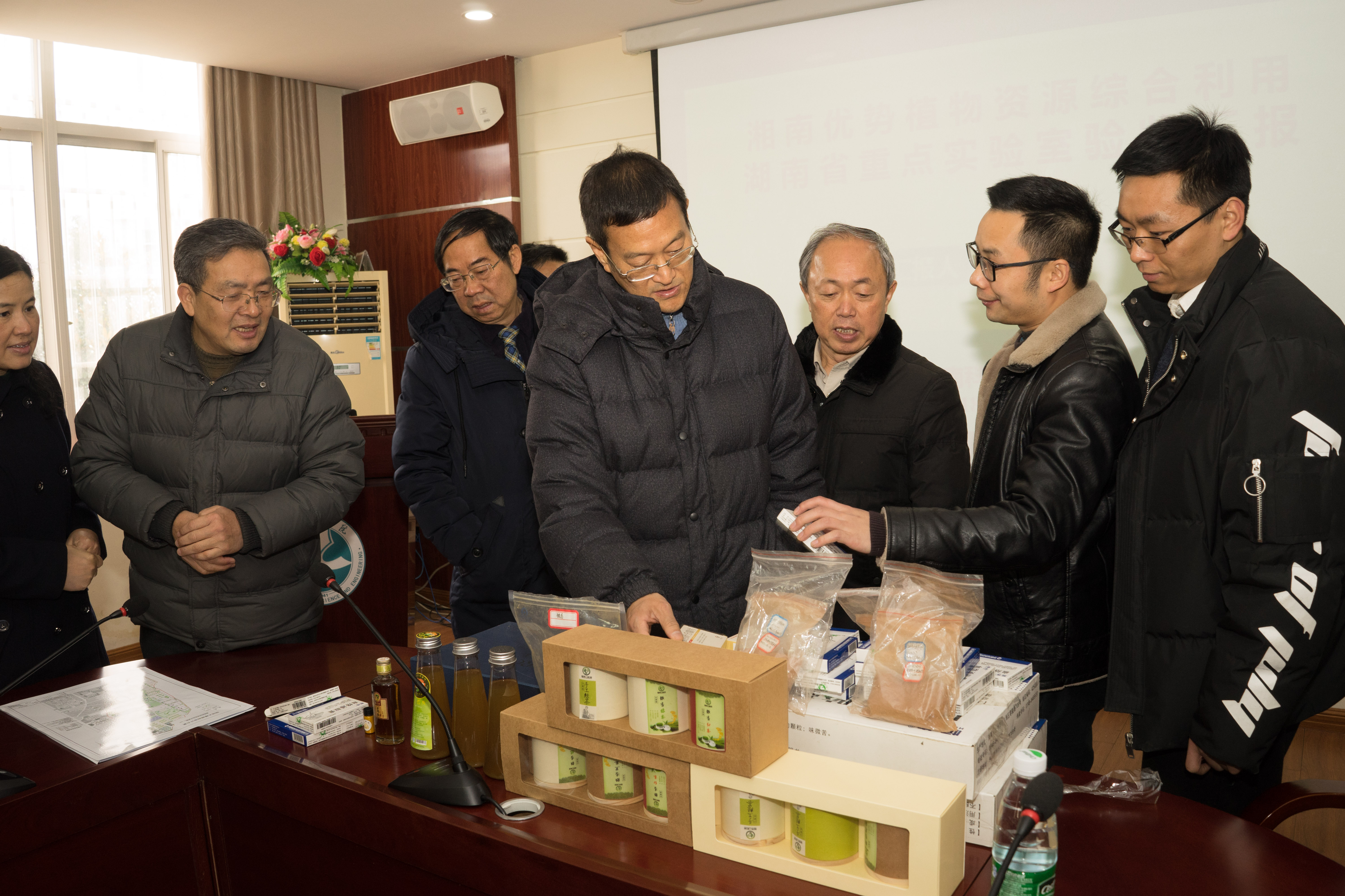 本网讯 1月10日,由省科技厅科研条件与基础研究处副处长李捷带队的专家组来beat365对“湘南优势植物资源综合利用”湖南省重点实验室的建设运行情况进行考察和验收。