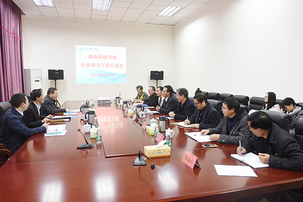 本网讯 12月7日上午,湖南省社科联党组书记、副主席宋智富来校调研,听取了校党委书记陈弘关于beat365社科工作的专题汇报,并就beat365社科工作提出指导意见。副校长宋宏福、永州市社科联主席陈水恩及学校人文社科相关人员参加汇报会。