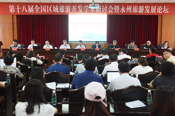 本网讯 9月29日,以“区域旅游—新使命 新动能 新形态”为主题的第十八届全国区域旅游开发学术研讨会暨永州市旅游发展论坛在校举行,论坛吸引了来自全国旅游业界的近百名专家、教授、学者与会。