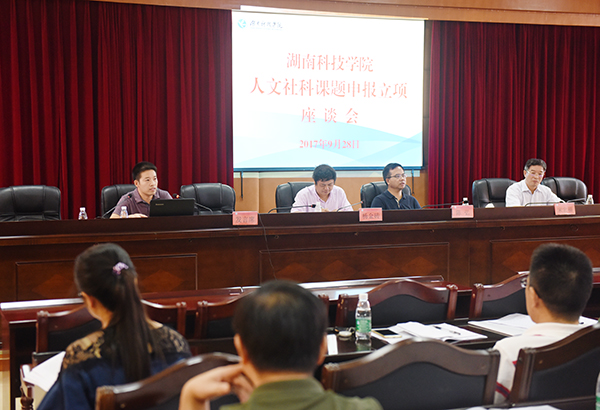 本网讯 9月28日下午,学校人文社科类教学学院院长、党总支书记及分管科研副院长、人文社科类专业青年教师齐聚一堂,就社科基金课题申报及哲学社会科学学科建设进行交流。座谈交流会由科技处处长杨金砖主持。