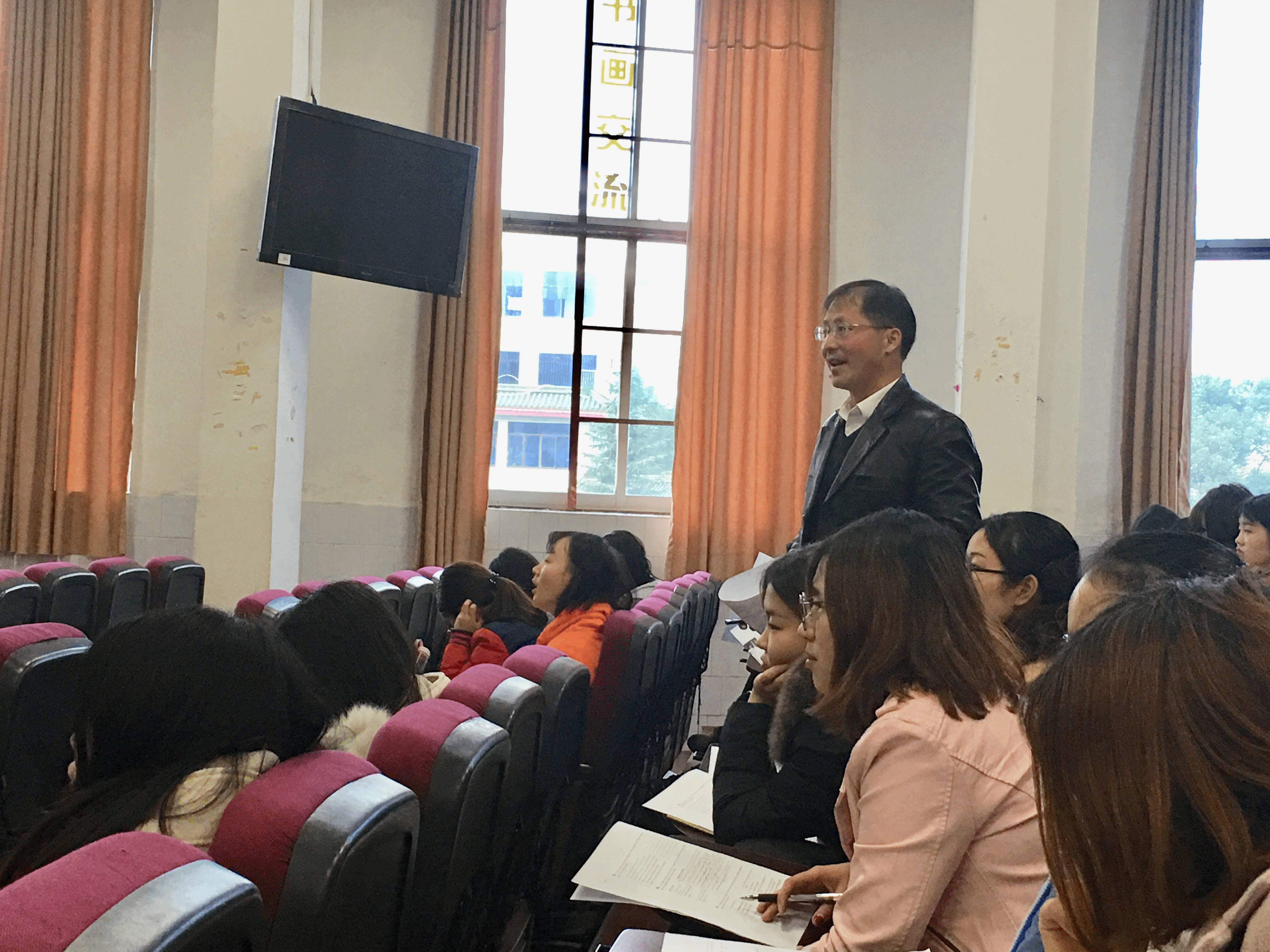 本网讯 12月5日下午,外国语学院邀请87级校友、宁远一中副校长、正高级英语教师陈清祥来校为2015级英语师范专业学生讲学。外国语学院院长欧华恩主持讲座。