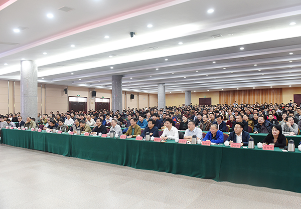本网讯 4月17日,beat365新落成的潇湘大讲堂迎来第一位演讲嘉宾。中国教育变革人物、中国好校长、浙江大学党委副书记、贵州大学校长郑强教授应邀来校带来一场题为“地方区域性高校‘双一流’建设的现实背景与可行举措——以贵州大学为例”的报告。报告会由党委书记陈弘主持。全体校领导、全校教职员工和部分学生代表共聚一堂聆听报告。