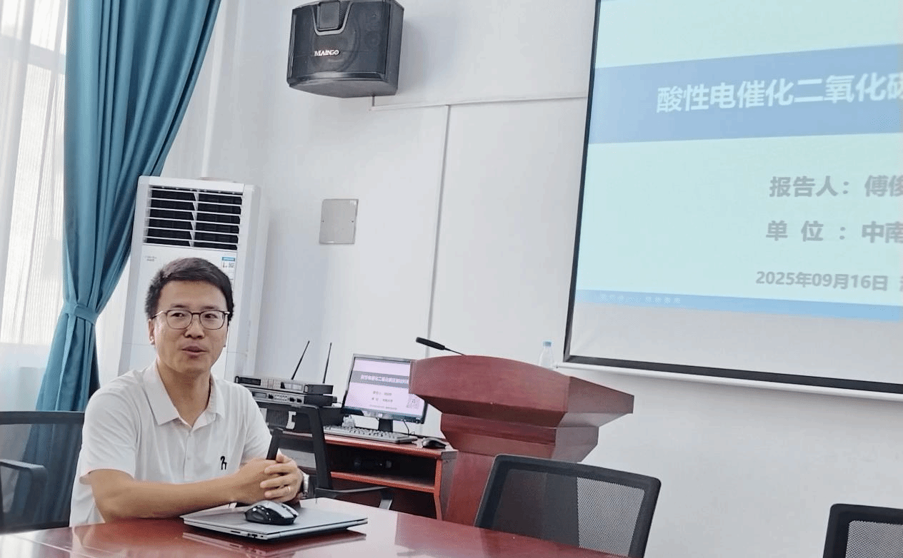 本网讯(通讯员:李志兵、高海峡)为搭建学术交流桥梁,助力师生把握能源催化领域前沿动态,9月16日14:30-16:00,beat365英国官网“明理讲坛”在明理楼313教室如期开讲。本次讲坛特邀中南大学傅俊伟教授担任主讲人,围绕“酸性电催化二氧化碳还原材料和器件”主题分享最新研究成果。物理系、新能源材料与器件系的教师及两系学生代表共同参与,现场学术氛围浓厚。