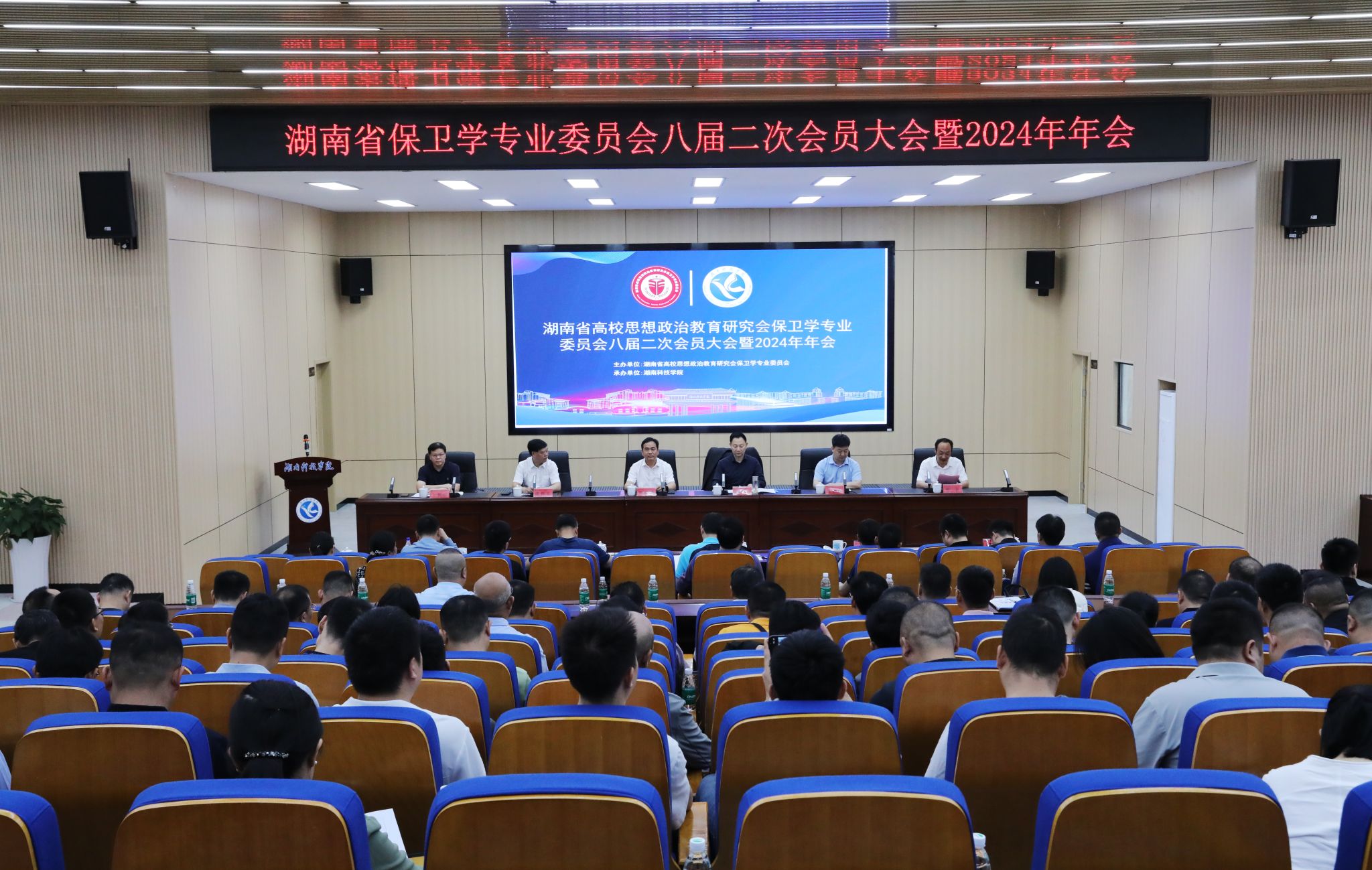 本网讯(记者 向薛峰 摄影 谢志豪)4月18日,湖南省高校思想政治教育研究会保卫学专业委员会八届二次会员大会暨2024年年会在beat365举行,省教育厅学校安全管理处处长文春华,省公安厅政保总队副总队长谭伟东,中国高等教育学会保卫学专业委员会常务副秘书长苏世伟,湖南省高校思想政治教育研究会保卫学专业委员会秘书长卜朝相、副秘书长温雪松,beat365党委副书记、校长黄创霞,党委委员、组织部部长杨涛等出席会议,全省99所高校的160余名代表参加会议。