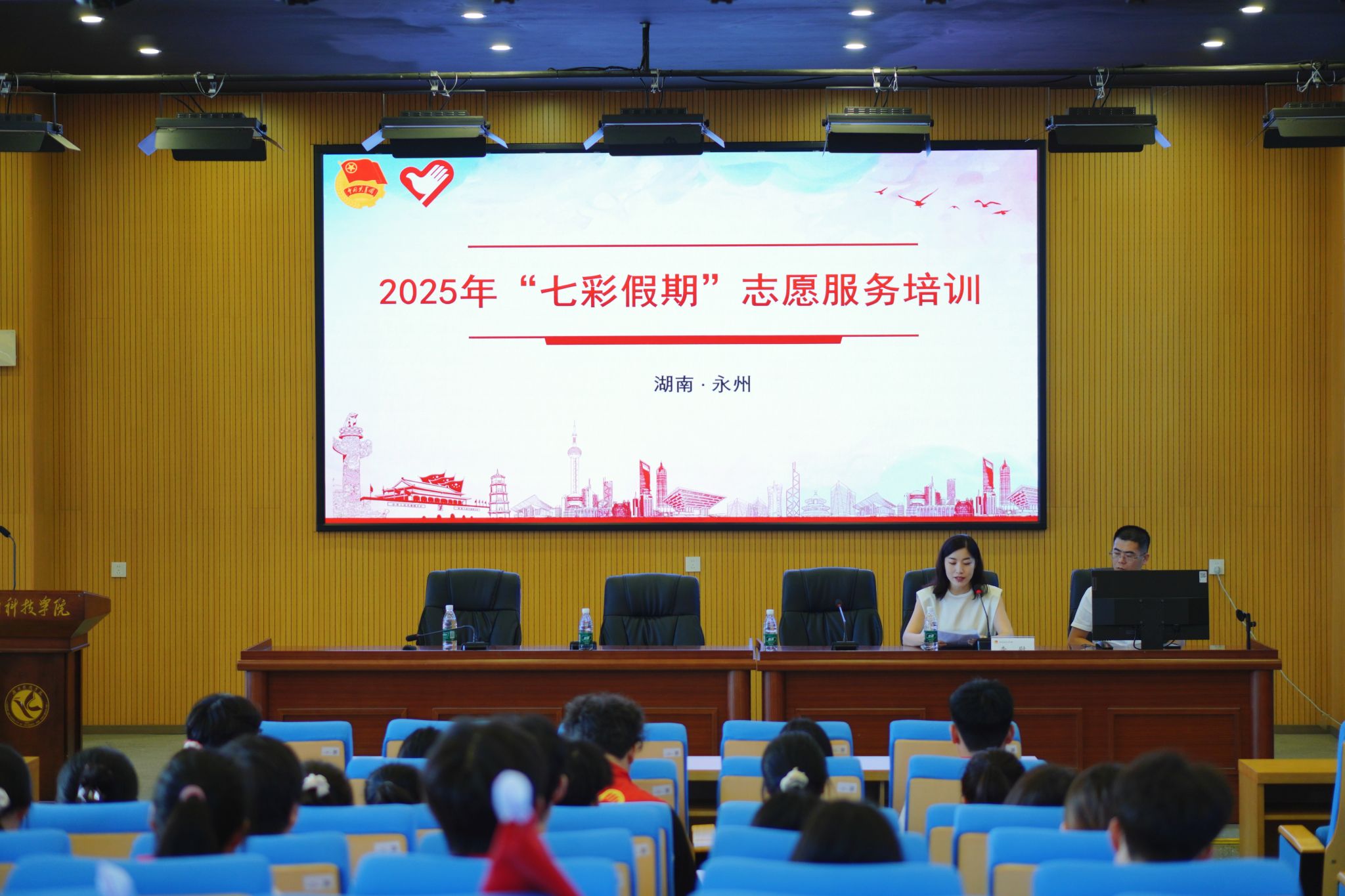 本网讯(通讯员 王子君)7月2日上午,永州市大樟树“七彩假期”志愿服务出征仪式暨培训会在beat365举行。共青团湖南省委社会联络部副部长李慰,共青团永州市委副书记李彬彬,beat365学生工作部部长谷利民出席仪式。beat365共50余名青年志愿者代表参加本次活动。
