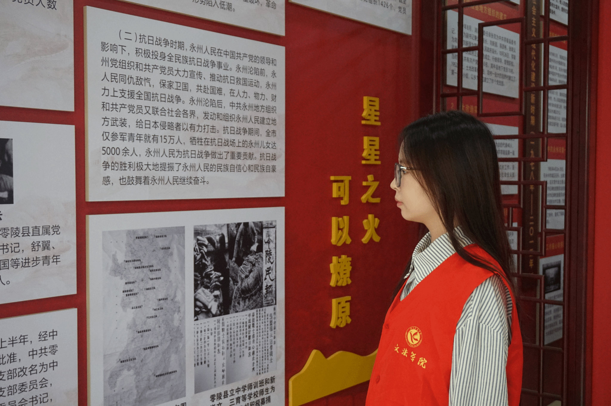 展厅通过“大广角”清晰展现了伟大光荣正确的中国共产党领导全国人民战天斗地、敢叫日月换新天的巨幅画卷,又通过“大焦距”将永州零陵这片历史悠久、底蕴深厚、可亲可敬的红色热土拉近呈现到同学们眼前。学校军事理论课教师张健告诉同学们:“国防关系到国家和民族生死存亡,中华人民共和国的每一位公民,都应该自觉接受国防教育,增强国防意识。”
