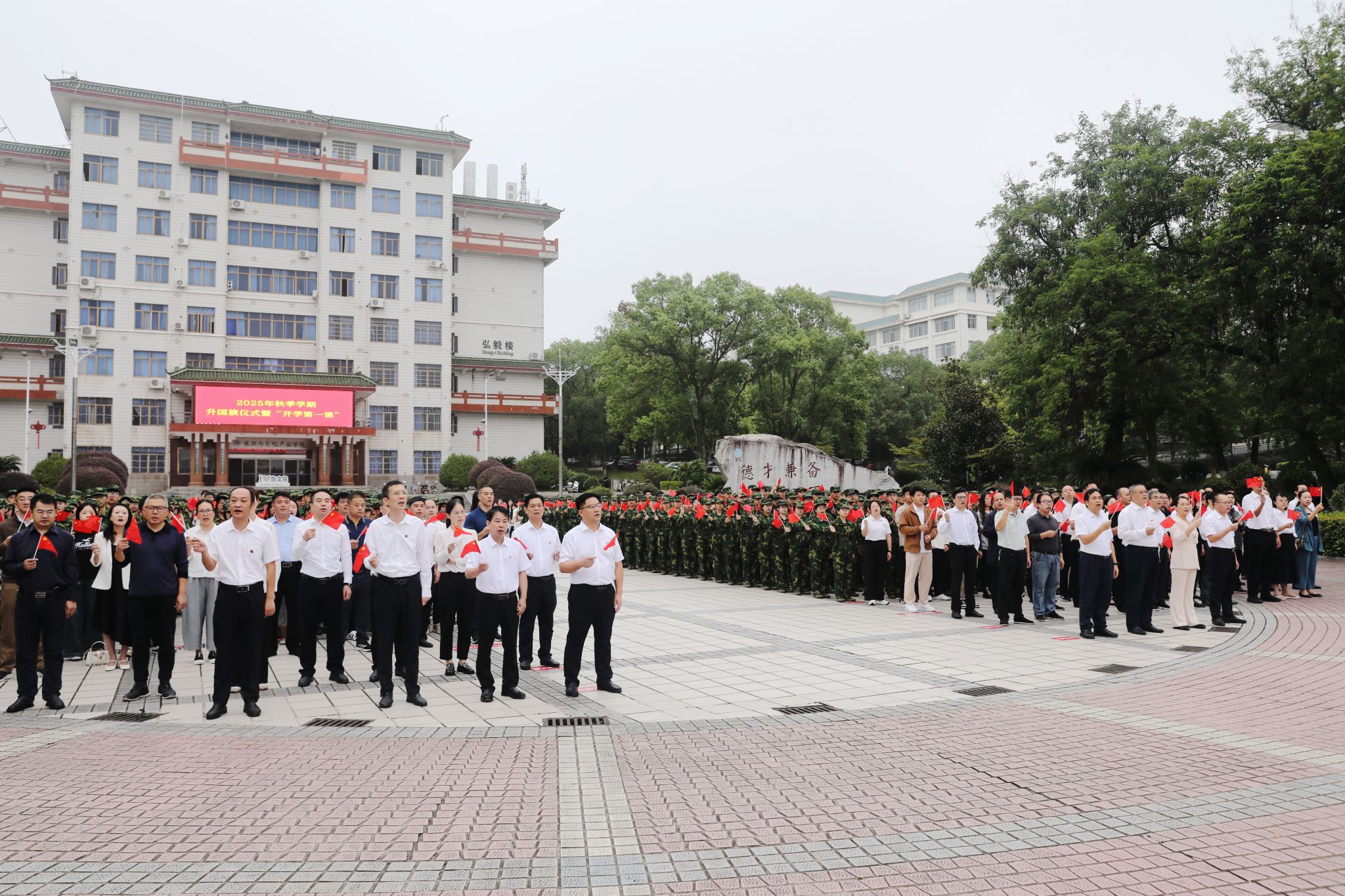 本网讯(记者 谷利梅 孙淑娴 摄影 谢志豪)辞夏迎秋,再启新程。9月28日,学校全体在校校领导、党委委员及1000余名师生齐聚舜德广场,举行2025年秋季学期升国旗仪式暨“开学第一课”。校党委书记李钢作国旗下的讲话,校长黄创霞主持升旗仪式。