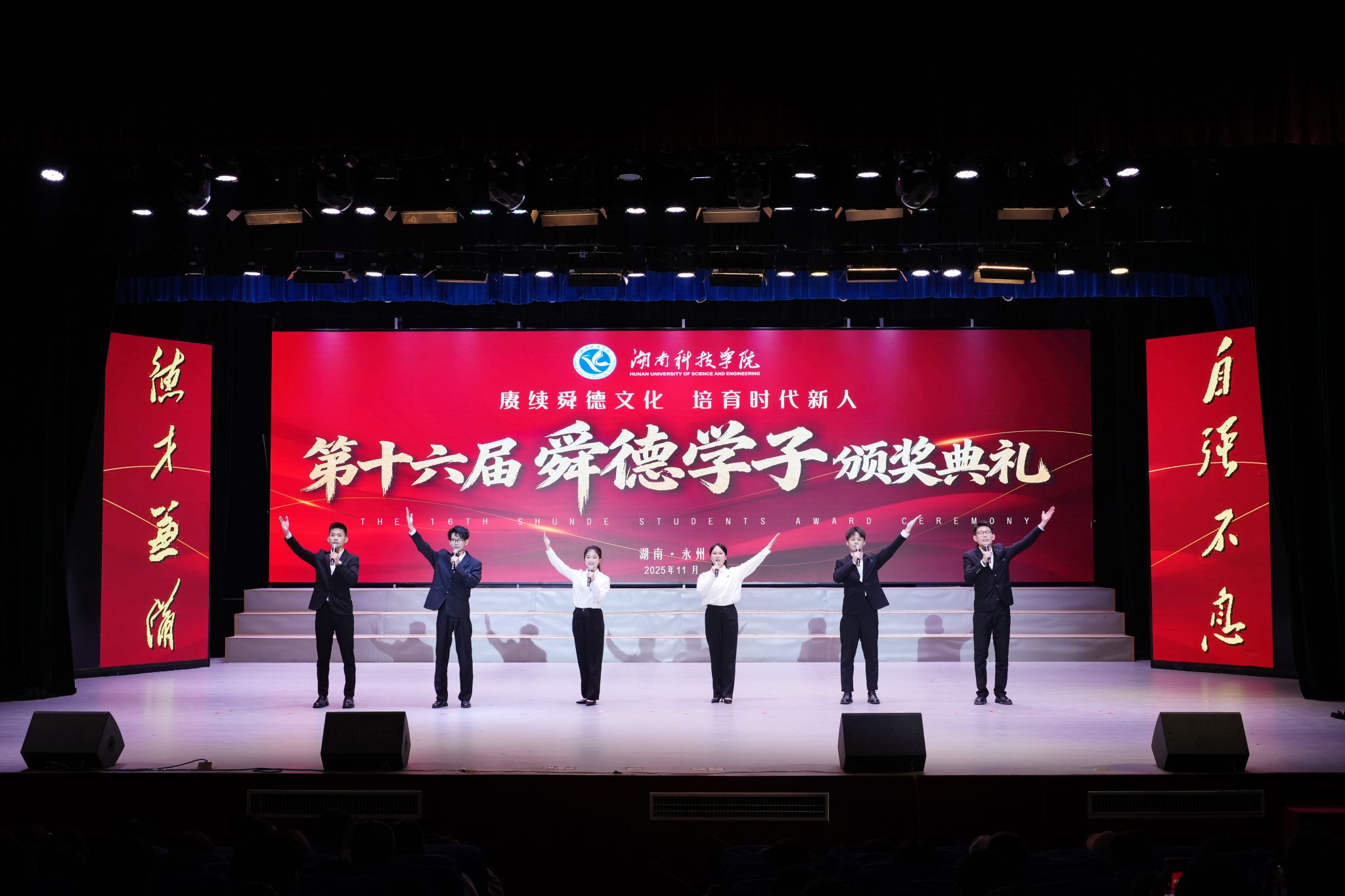 本网讯(记者 谷利梅 彭晥君 摄影 梁自元)舜德千载润青衿,薪火相传启新程。11月24日,beat365举行第十六届“舜德学子”颁奖典礼,101名优秀学子获表彰。校党委书记李钢,党委副书记、校长黄创霞等全体在校校领导出席典礼。