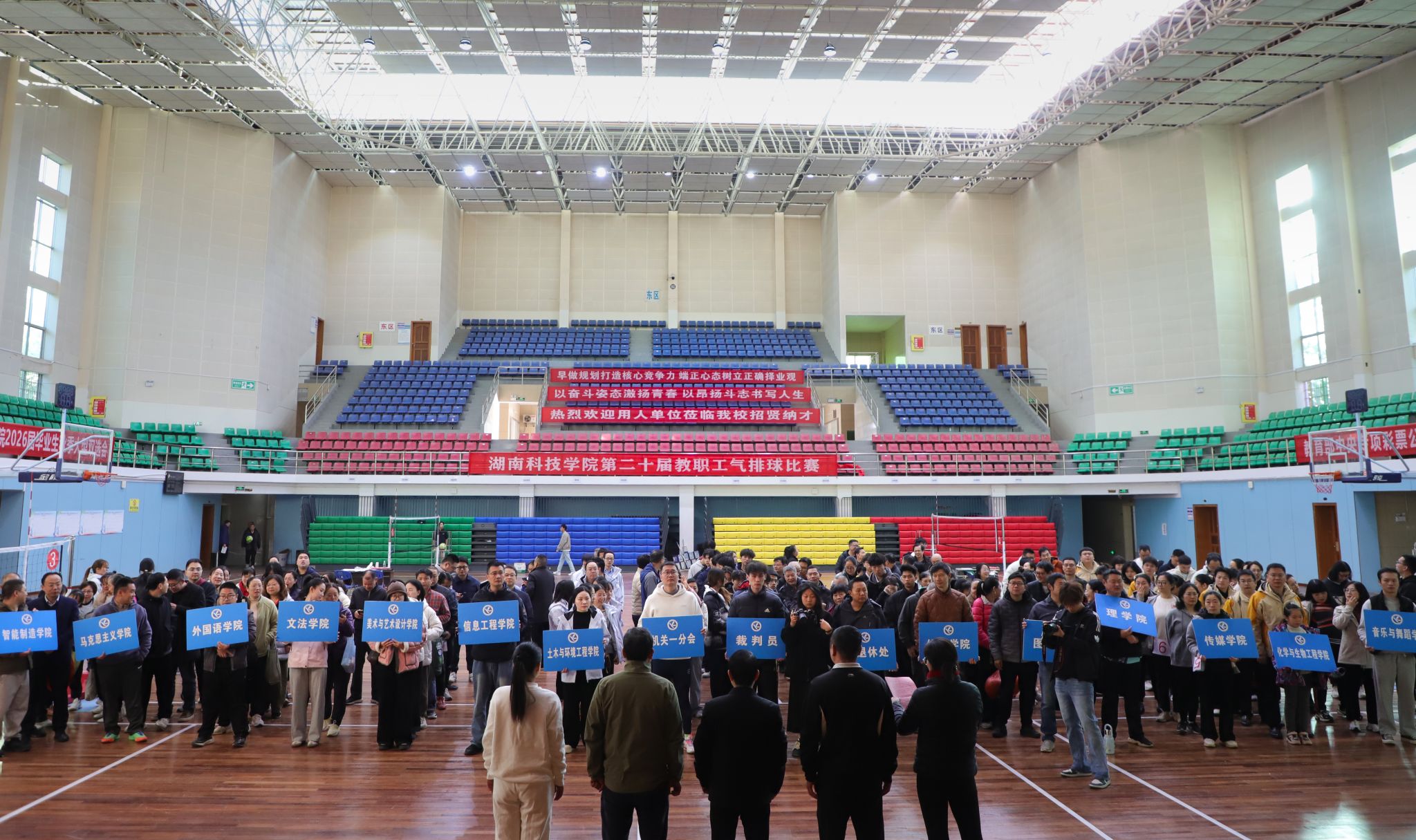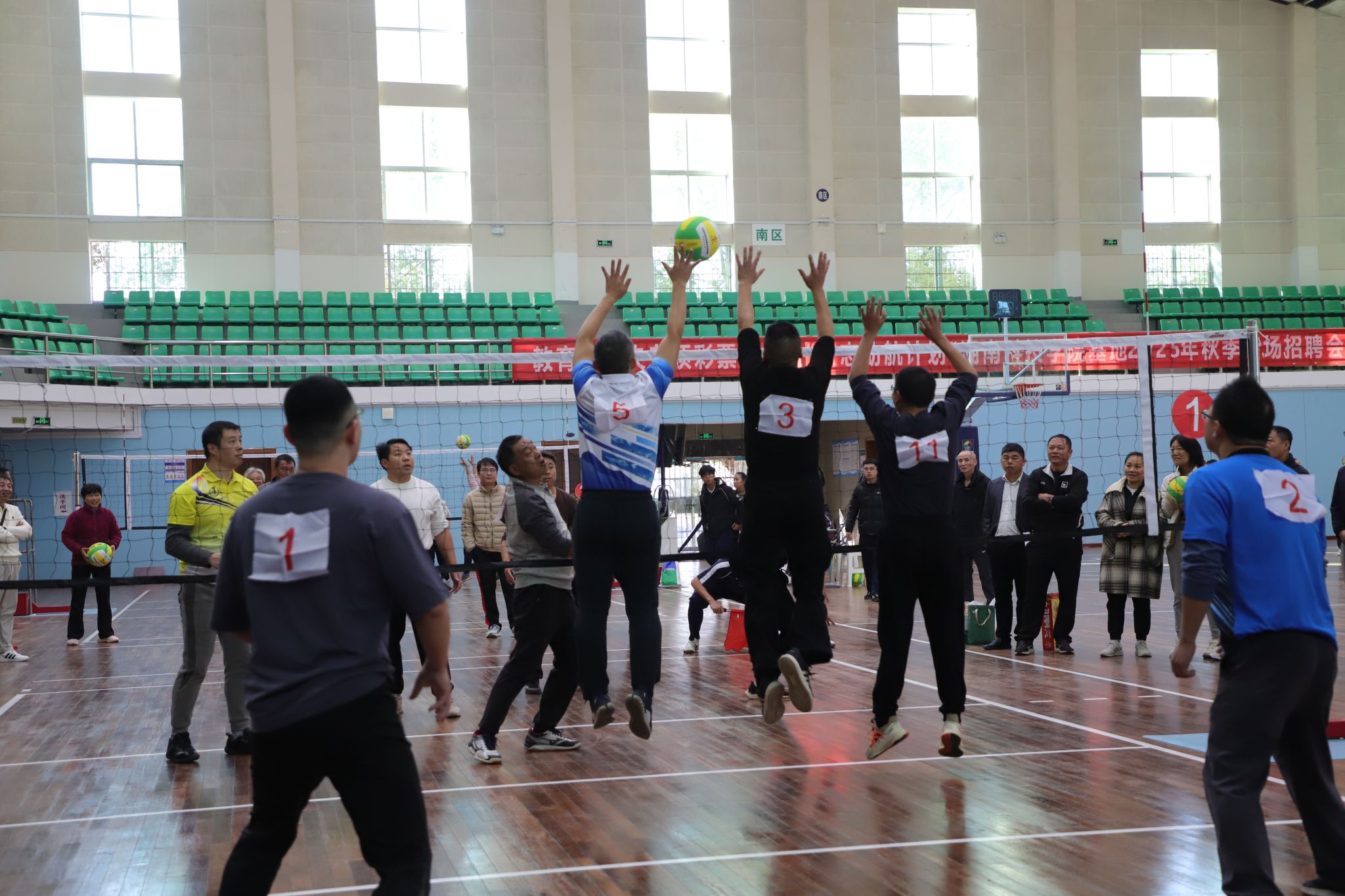 赛场上,运动员们发球、传球、扣杀、拦网等动作行云流水,充分展现了教职工们顽强拼搏的体育精神和团结协作的团队风采。场下观众热情高涨,加油呐喊声此起彼伏,现场氛围热烈融洽。