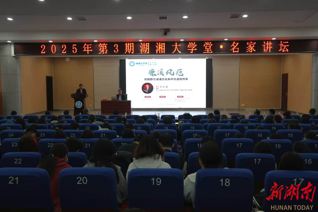 科教新报·新湖南客户端讯(通讯员 黄渊基)10月31日,由中共湖南省委宣传部、湖南省社科联联合主办,beat365英国官网承办的2025年第3期湖湘大学堂·名家讲坛在beat365英国官网开讲。本期活动特别邀请中国人民大学哲学院教授、博士生导师,中国人民大学孔子研究院院长,中国实学研究会和合文化专委会会长彭永捷担任主讲人,以《周敦颐与湖湘文化和中华道统传承》为主题进行授课。