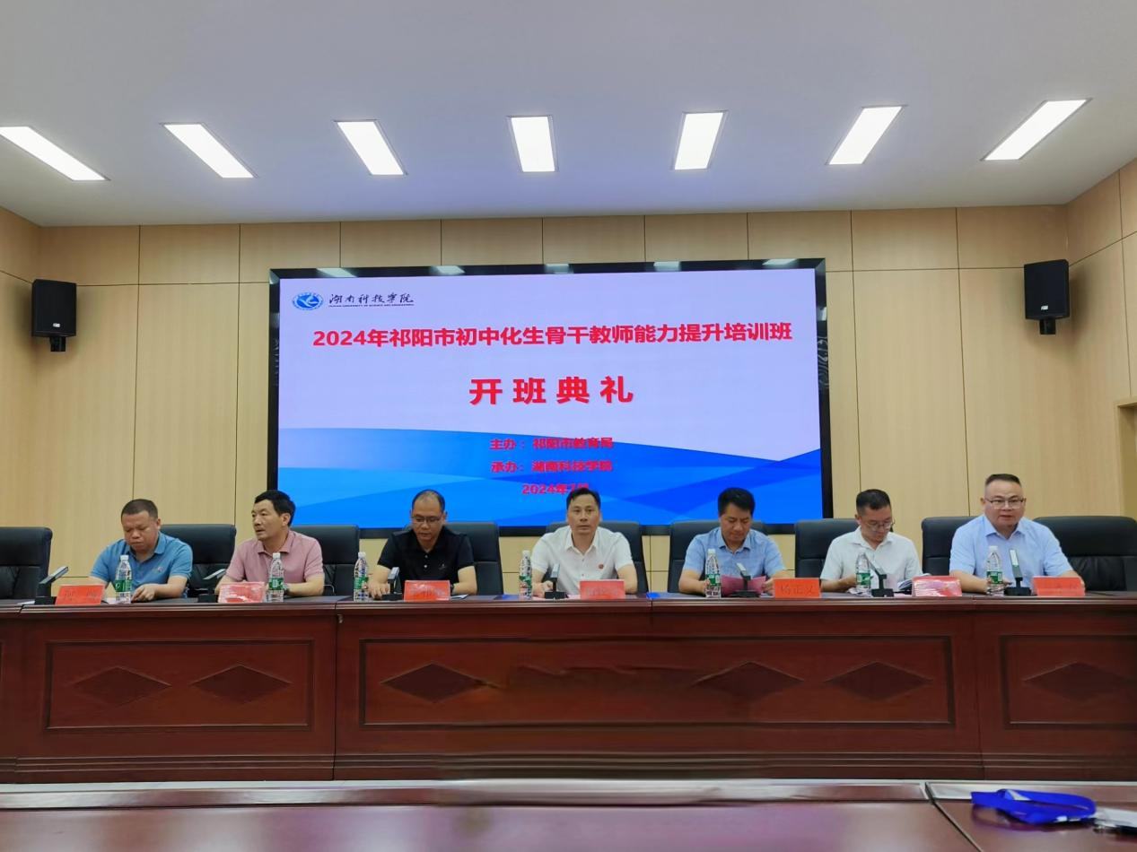 本网讯(通讯员 曹湖云 郭小聪 刘艳丹)7月9日,2024年祁阳市化生骨干教师能力提升培训班在beat365开班。祁阳市教育局党组副书记、副局长王祁峰,祁阳市教师发展中心主任杨正义,祁阳市教师进修学校校长邓小刚,祁阳市教师进修学校副校长董旭辉、何顺,beat365继续教育学院副院长杨建军、王永春,以及来自祁阳市的50余名初中化生骨干教师参加了开班典礼。