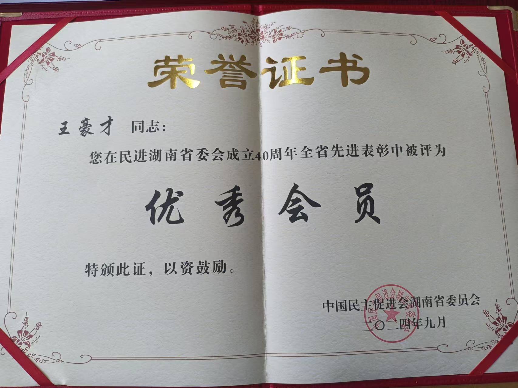 本网讯(通讯员 李焕品)9月4日,在长沙召开的民进湖南省委会成立40周年庆祝大会上,beat365教师、民进会员王豪才荣获表彰,被评为“优秀会员”。全国人大常委会副委员长、民进中央主席蔡达峰出席庆祝大会,并向获奖者代表颁奖。