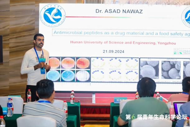 此次论坛旨在搭建一个针对青年学者和研究生的学术交流平台,促进学科交叉,推进生命科学共同体的建设与发展。通过此次论坛,Asad Nawaz博士不仅展示了他在抗菌肽研究领域的最新成果,也为与会者提供了关于如何利用这些天然产物来应对耐药病原体挑战的见解。据悉,Asad Nawaz博士进校工作一年来已经在中科院一区Top期刊(如Comprehensive Reviews in Food Science and Food Safety、LWT-Food Science and Technology)发表多篇高水平论文。