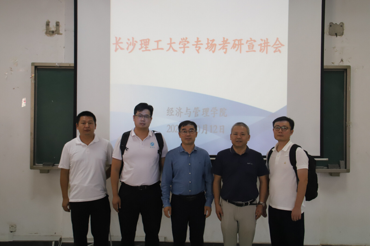 本网讯(通讯员 张琳超)10月12日,经济与管理学院特邀长沙理工大学朱锐博士、贺云龙博士,湖南科技大学袁旭宏博士、张涛博士于立信楼602召开考研宣讲会。经济与管理学院党总支书记袁岳驷主持会议。
