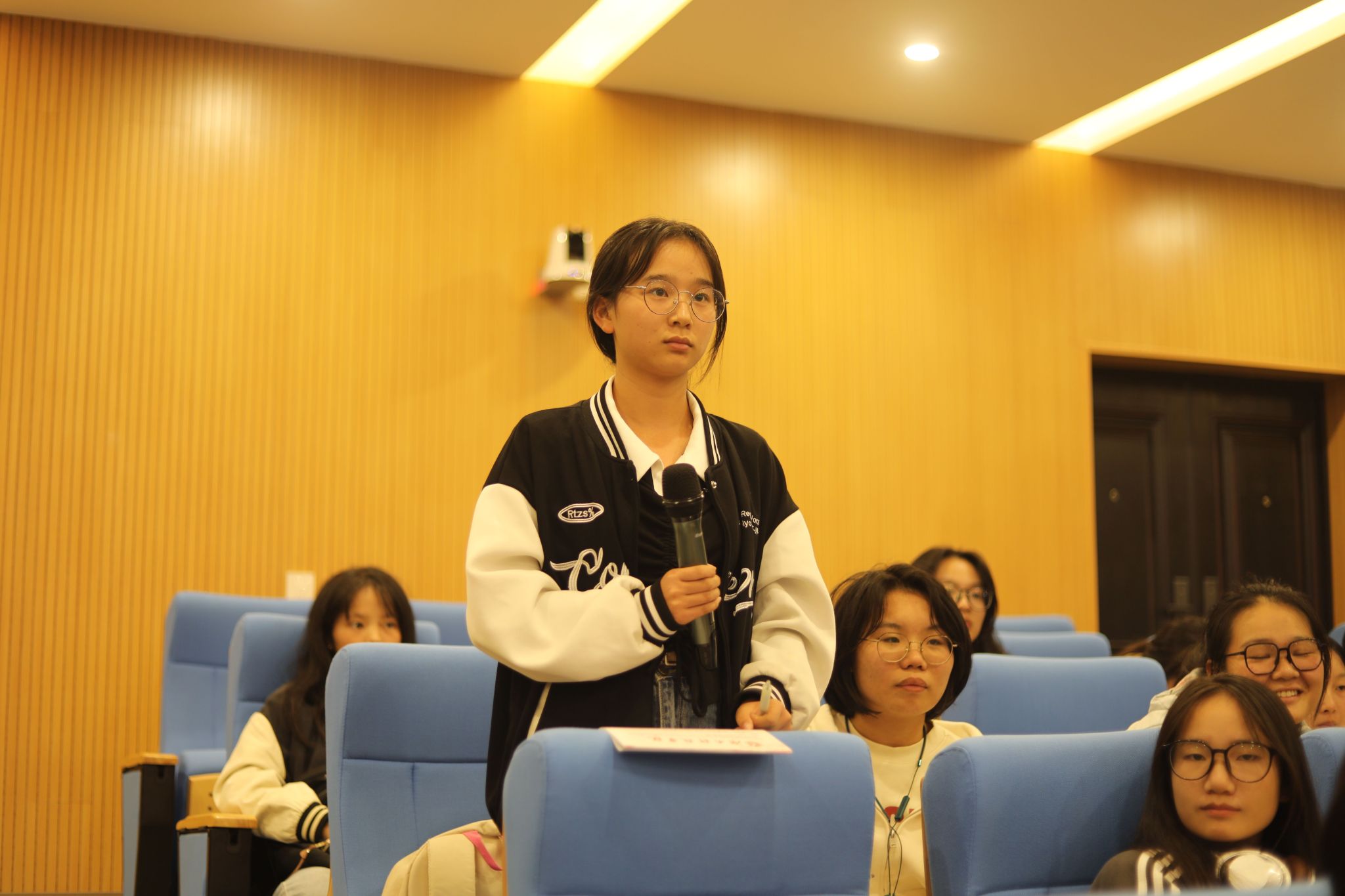 在交流互动环节,与会同学围绕当前就业、专业学习兴趣培养、考级考证、考研等方面提问。徐心茹皆一一认真给予了回答。曹惠如在总结中指出,这次讲座干货满满,对同学们今后的学习生活和职业规划具有非常实际的指导意义,她希望同学们结合自身成长与发展规划,不断提升自身的专业素养与核心能力。