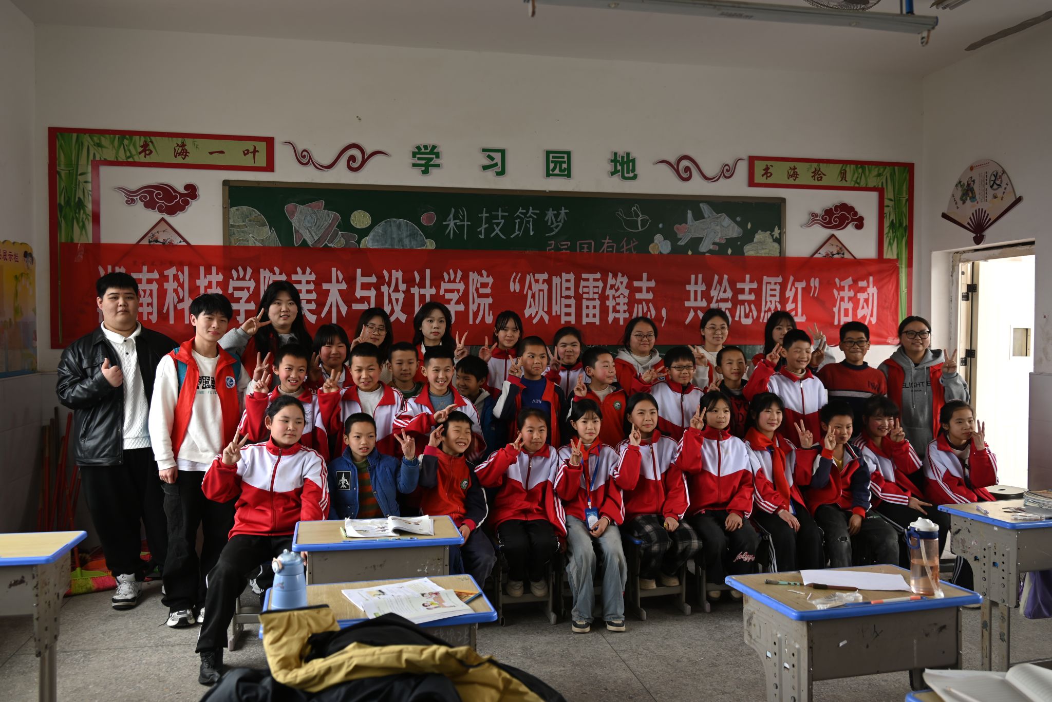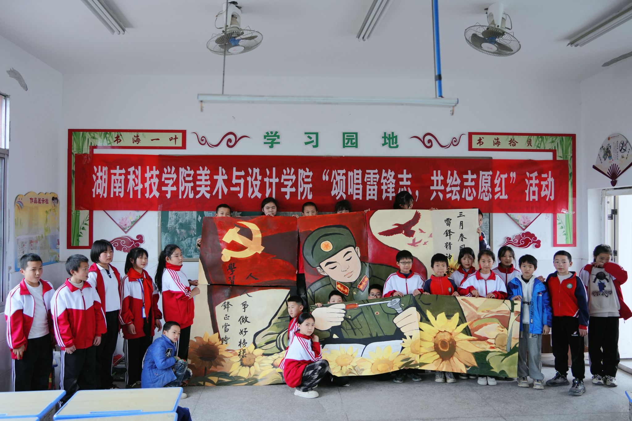 美术与艺术设计学院还注重打造“行走的思政课堂”,拉近理论与实践、榜样与日常的距离,多次赴五里牌小学等实践场所开展志愿服务活动,于田间地头、育人一线探索“指尖学习”“情景教学”等方式。大中小学生们在一笔一画、一唱一和中,寓教于乐、浸润童心,教师说给学生听,青年说给青年听,大学生说给小学生听,让“雷锋精神”代代相传。