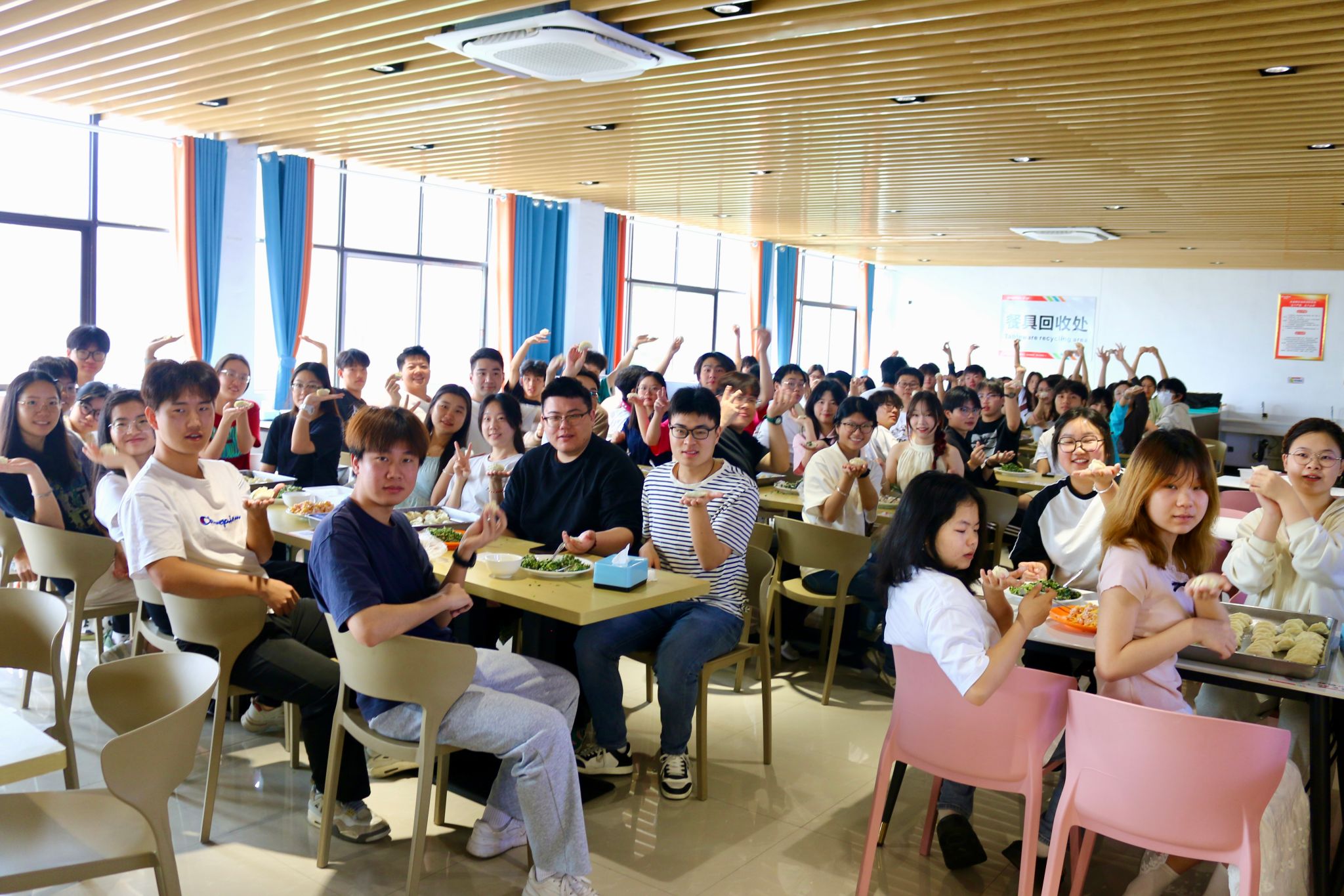 信息工程学院大三学生彭叶强特意为食堂师傅捏了一盘“创意饺子”,他笑着说:“师傅们保护我们舌尖上的安全很辛苦,今天换我们用劳动成果表达感谢!”收到饺子的李阿姨感动道:“孩子们的心意比饺子还暖,这份‘劳动传递劳动’的情谊特别珍贵。”