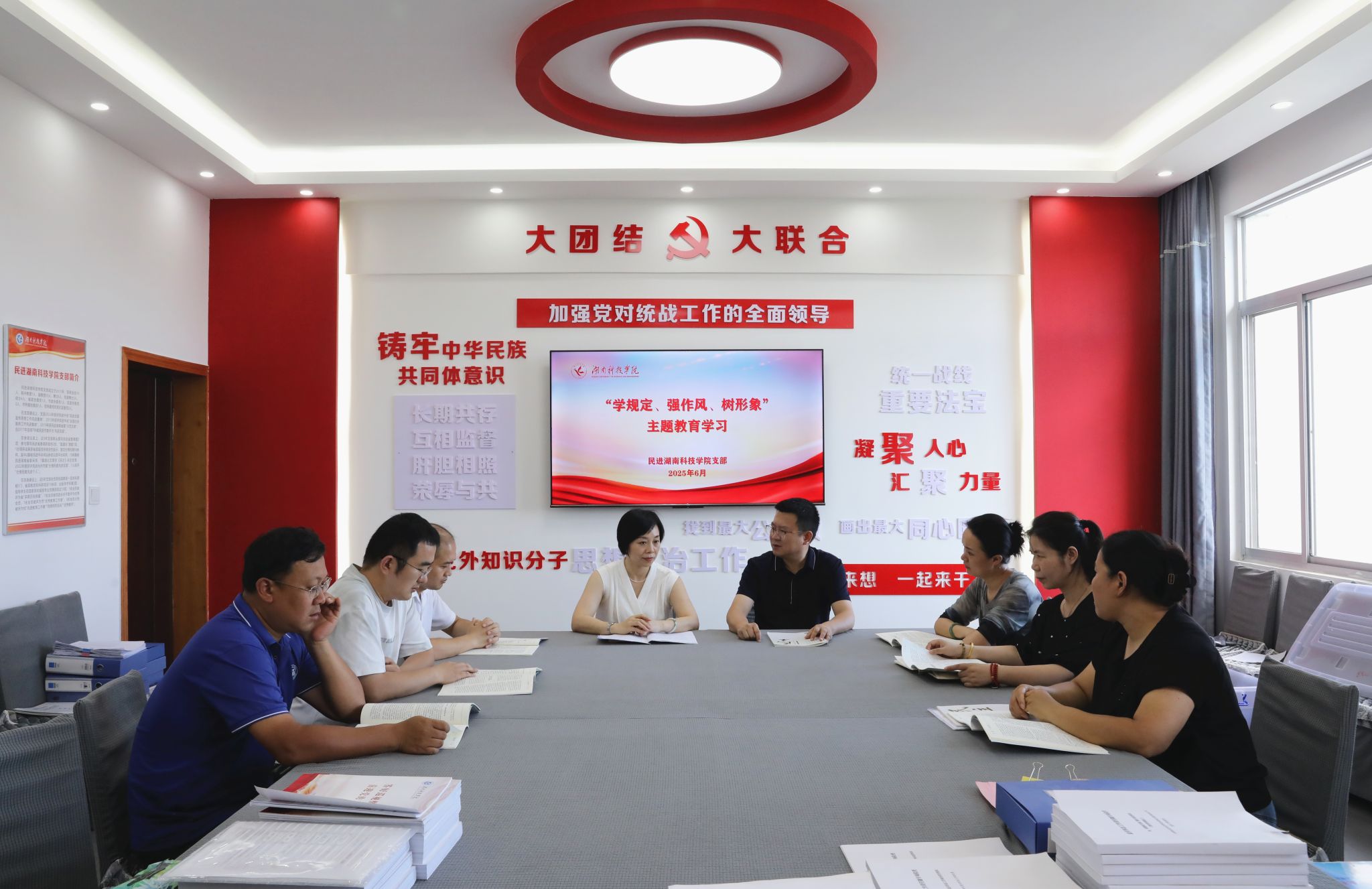 本网讯(通讯员 李小雨 李焕品)6月27日,民进beat365英国官网支部召开“学规定、强作风、树形象”主题教育学习会,深入学习贯彻中共中央八项规定精神,全面加强纪律作风建设。支部主委何丽萍主持会议并讲话。