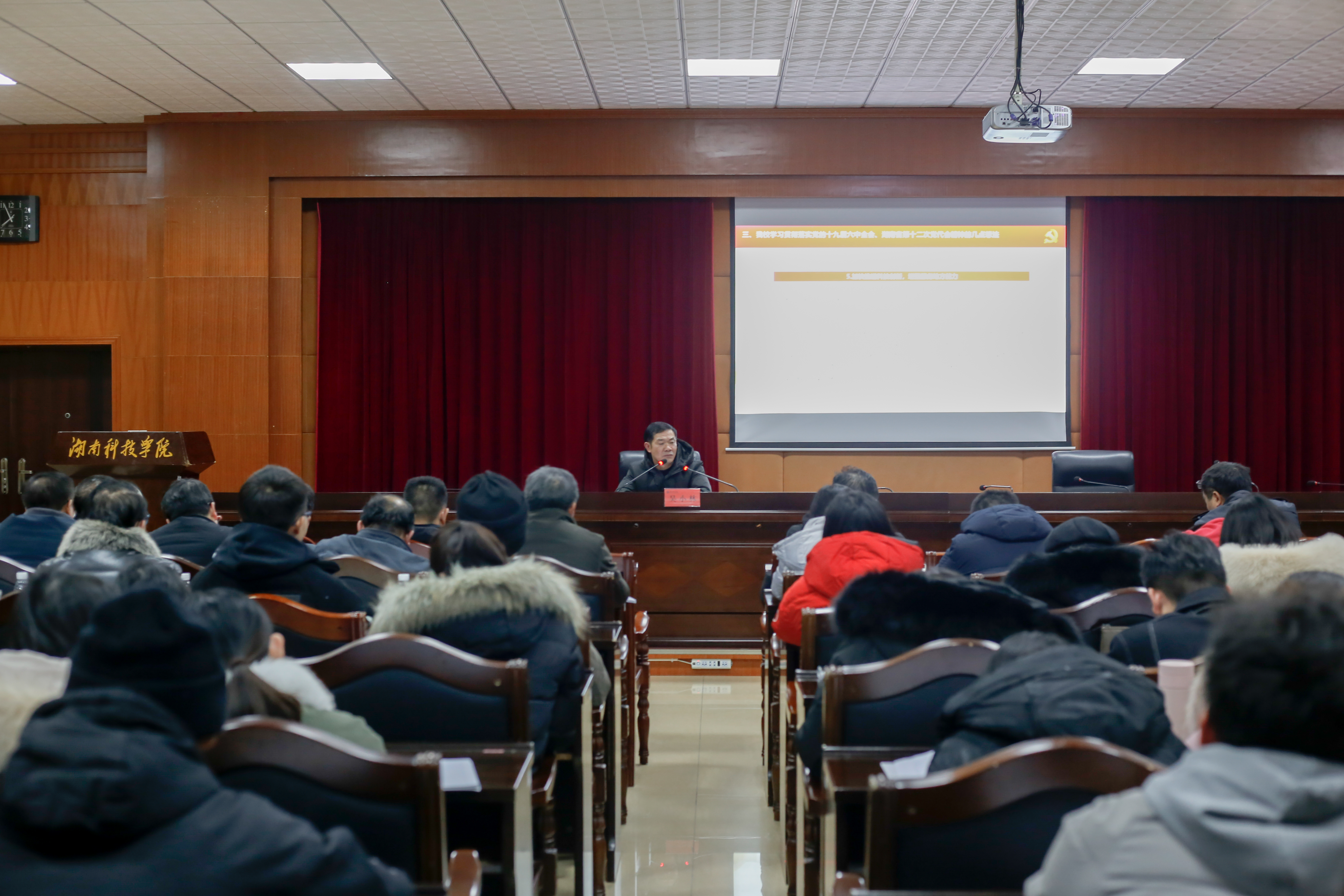 曾宝成强调,党的十九届六中全会是在重要历史关头召开的具有重要意义的会议,各职能部门、教学学院要把学习贯彻党的十九届六中全会精神、省第十二次党代会精神同贯彻落实习近平总书记关于教育的重要论述结合起来,同习近平总书记对湖南重要讲话重要指示批示精神结合起来,同党史学习教育结合起来,同落实立德树人根本任务结合起来,深入学习领会,增强干事创业本领,把全会精神转化为办学治校的新思路、新方法、新情况,深化教育体制综合改革,切实提升干事能力水平,推进学校内涵发展、特色发展、跨越发展。为学校“十四五”开好局、起好步奠定坚实基础,为加快建设现代化新湖南、现代化新永州贡献学校力量,以优异成绩迎接党的二十大胜利召开。
