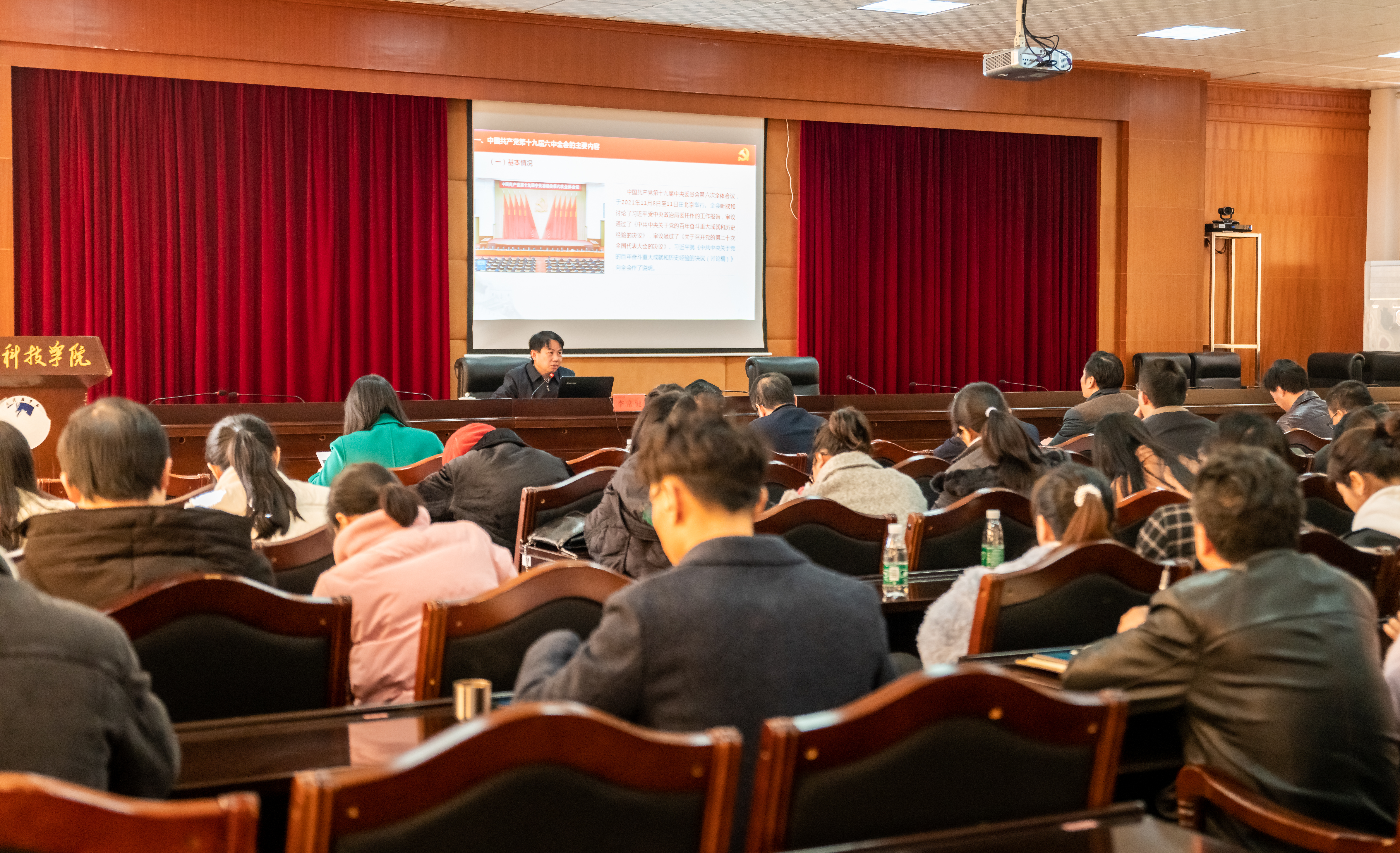 校领导、党委委员围绕党的十九届六中全会、省第十二次党代会报告的主要内容,结合详实的历史资料,深刻剖析了党的百年奋斗的重大成就和党的百年历史经验,为师生们全面深刻理解习近平新时代中国特色社会主义思想的丰富内涵和核心要义及习近平新时代中国特色社会主义思想产生的理论逻辑、历史逻辑和实践逻辑,作了深入浅出的讲解。