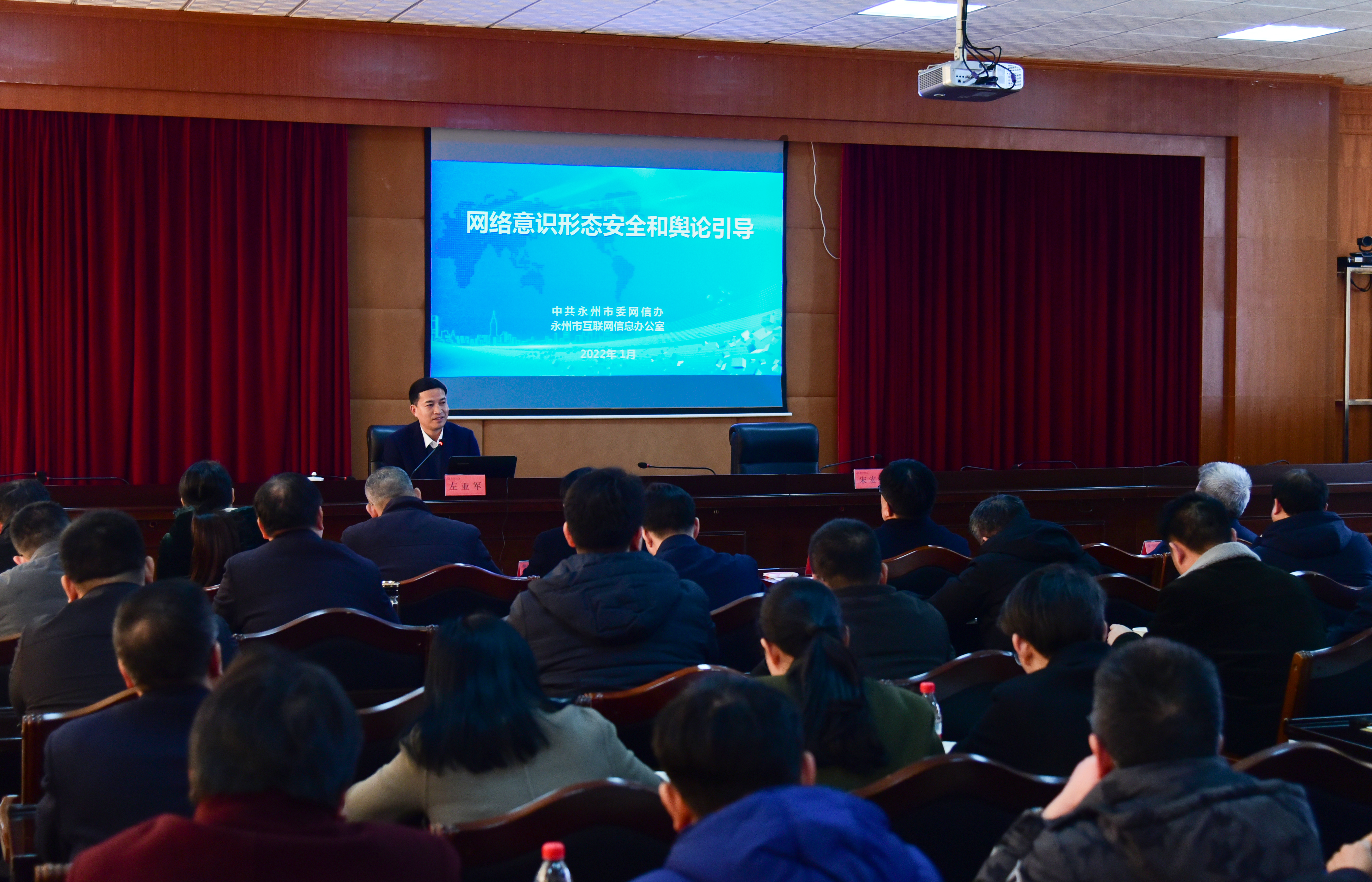 左亚军以《网络意识形态和舆论引导》为题作专题报告,他系统梳理了习近平总书记关于意识形态工作的重要论述,结合实际工作中的具体案例和自己的探索与思考,深刻剖析了网络意识形态工作的极端重要性、基本特征、面临挑战以及如何积极有效应对网络舆情等。