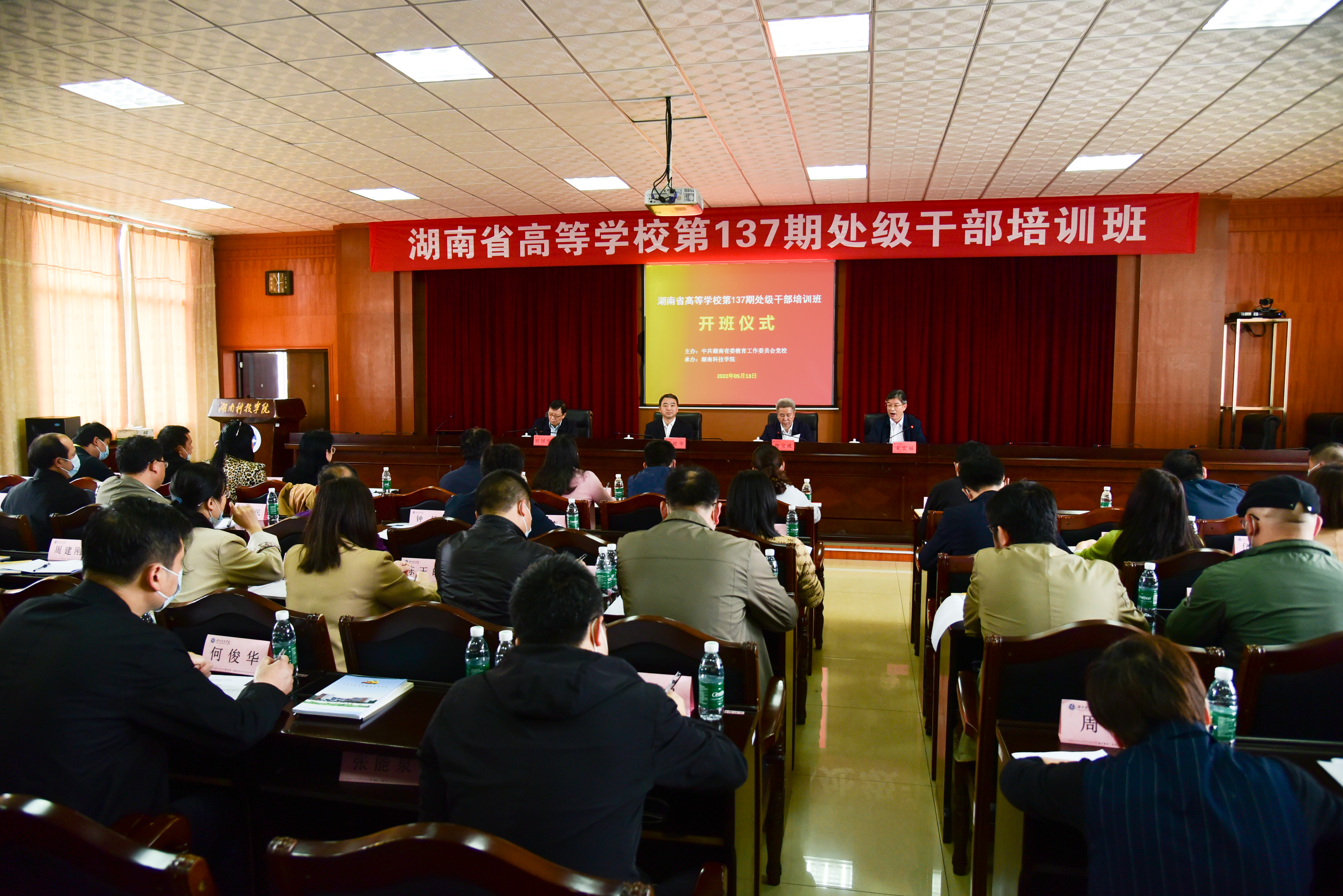本网讯 (记者 敖露 )为加强beat365处级干部政治理论培训、夯实理论基础、增强党性修养,5月13日下午,湖南省高等学校第137期处级干部培训班开班仪式在行政楼举行。省委教育工委副书记、省教育厅党组成员、省委教育工委党校校长王建华,省委教育工委党校常务副校长、省高校干部培训中心书记、主任刘国华,校党委书记曾宝成,党委副书记宋宏福出席本次仪式。开班仪式由宋宏福主持。