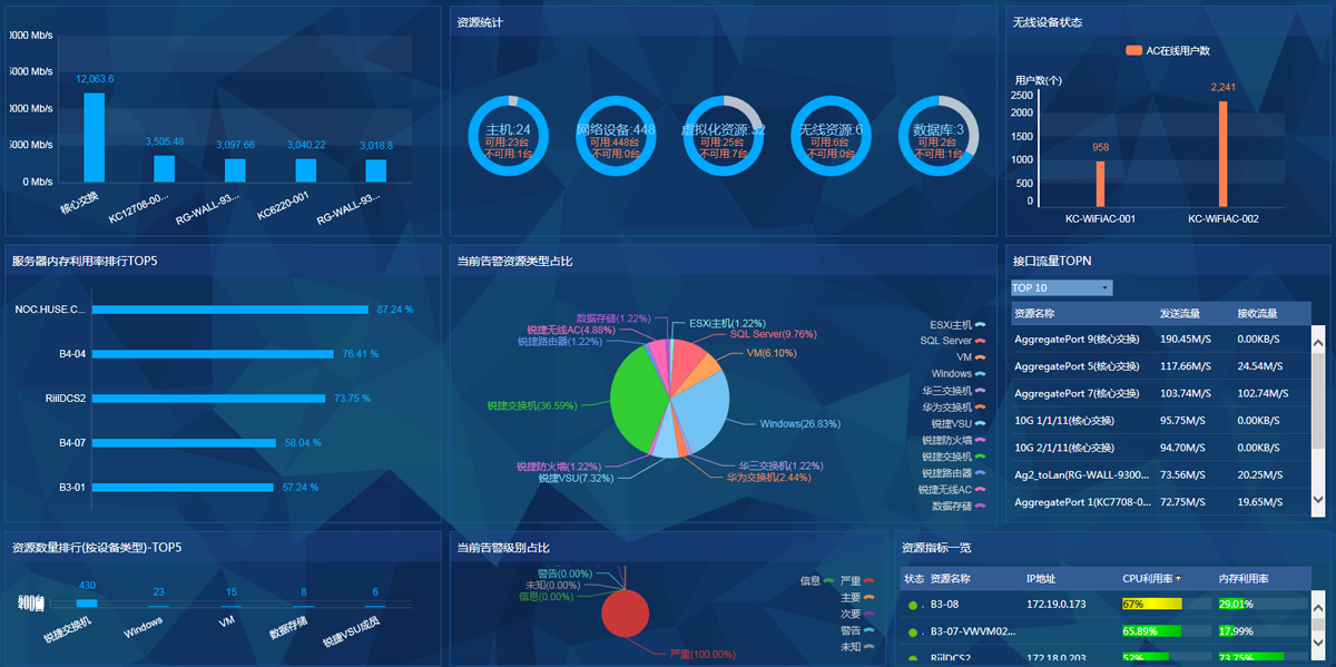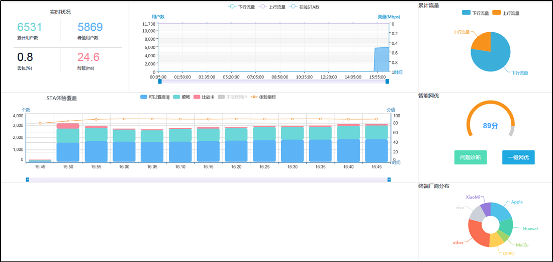(5)无线智能优化平台。通过WIS无线智优化平台,可管理并随时了解4600多台无线AP的运行状态和信号质量,优化AP信道和功率以达到用户最佳接入状态。