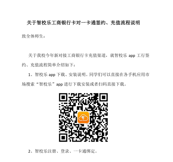 关于智校乐工商银行卡对一卡通签约、充值流程说明