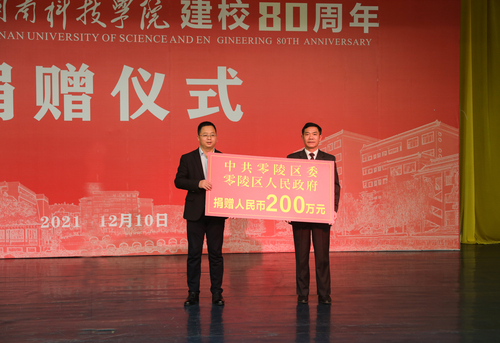 本网讯(记者 唐敏杰)12月10日下午,beat365举行建校八十周年捐赠仪式,地方政府、社会组织和友好人士及校友为学校捐赠物资和现金。零陵区委副书记、区长龙亮,冷水滩区委副书记、区长李辉等地方政府代表,永州科隆房地...