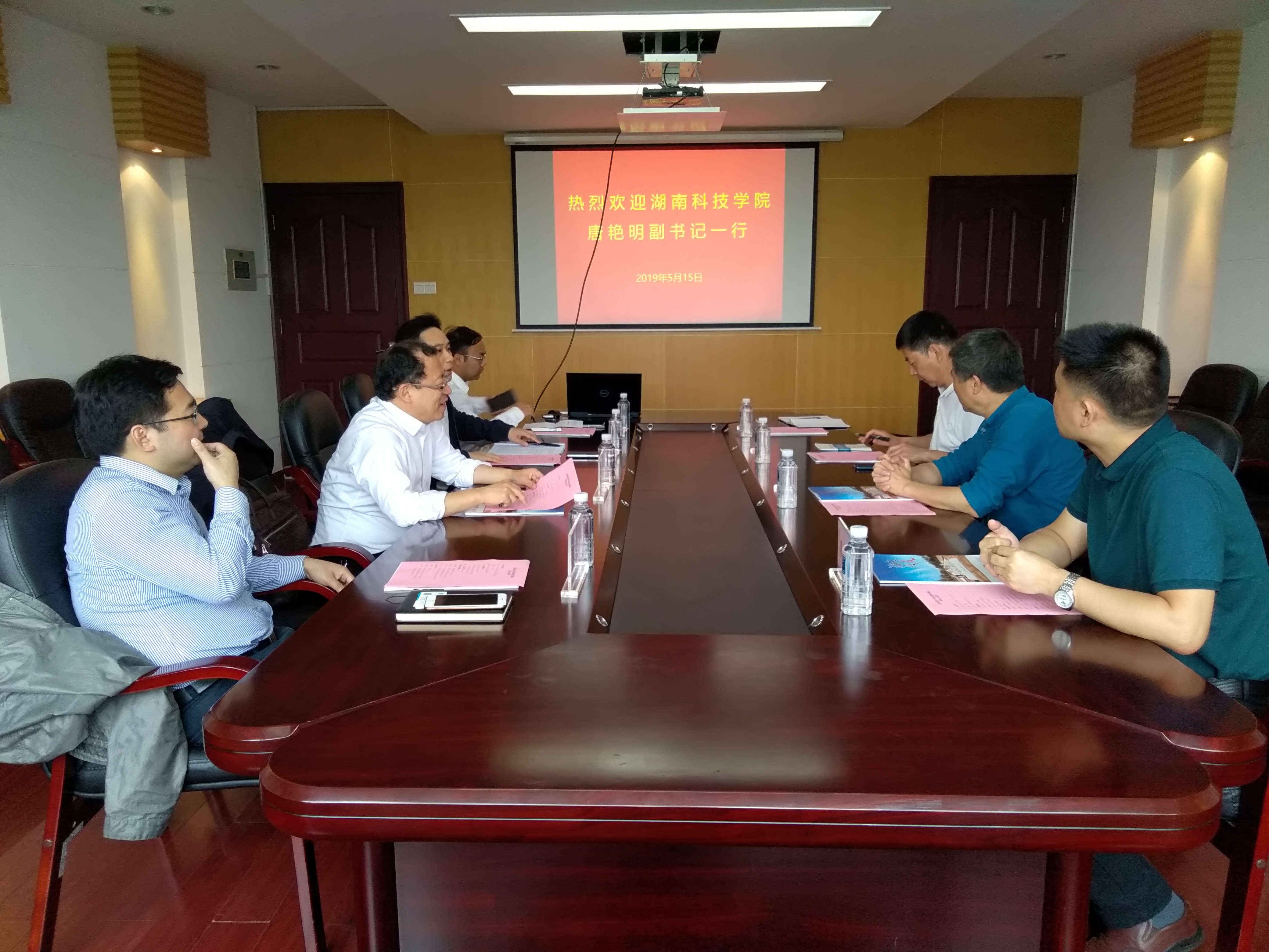 湘潭大学副校长刘建平看望了唐书记一行并进行了亲切的交谈。湘潭大学校友办、教育基金办公室副主任杨建军,张月朗从校友会工作、教育基金会工作以及湘大60周年校庆筹备工作分别作了详细介绍。双方就校友联络、校友信息采集、校友走访、地方校友会的建立和管理、校庆工作等方面进行了深入交流和探讨。