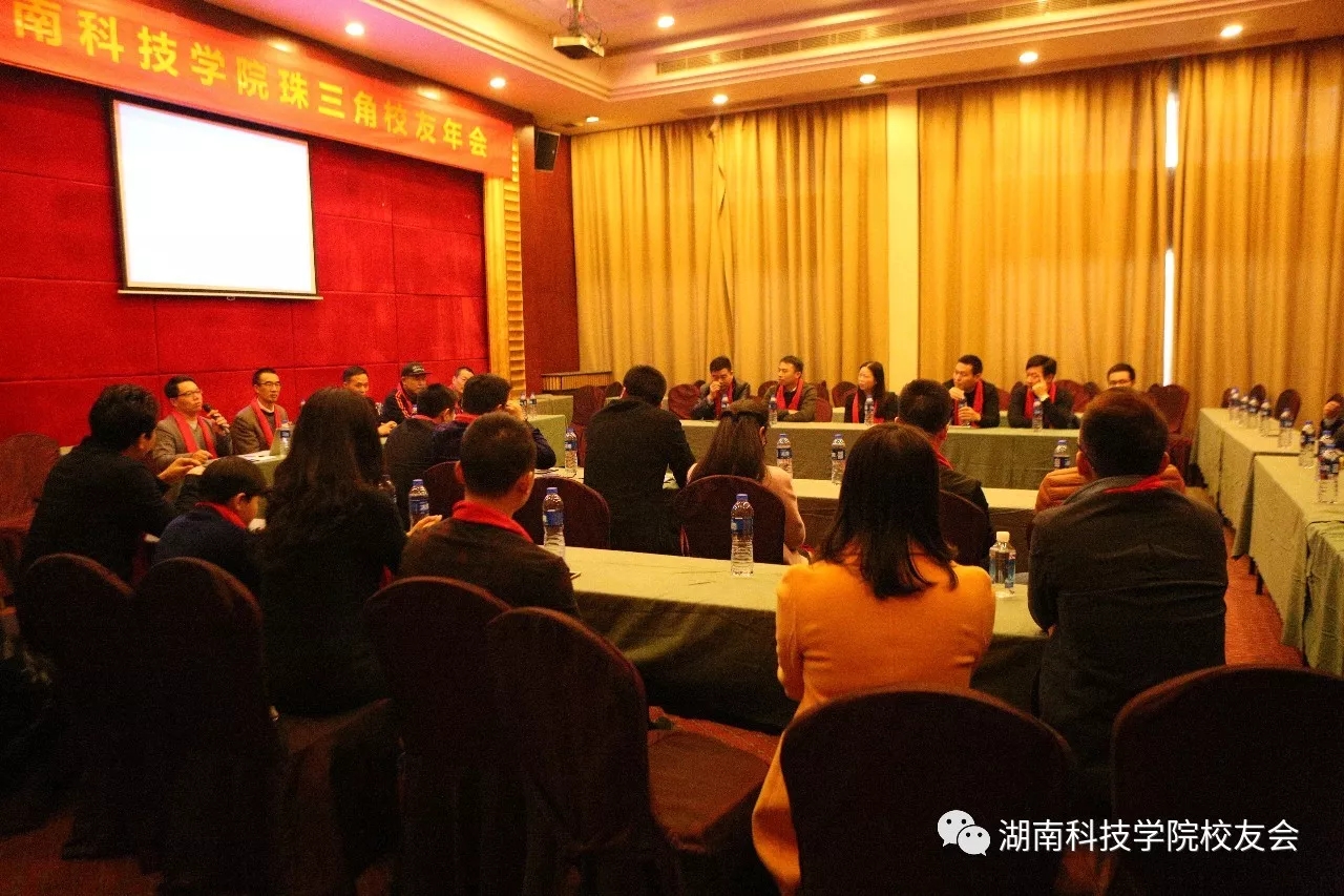 下午四时许,珠三角校友年会正式开始,湖南科技科院党委陈弘书记代表母校在年会上致辞,他强调学校非常重视校友会的建设,他指出校友会是校友情感的粘合剂,母校是全体校友的第二故乡。希望各校友会多开展各种形式的活动,加强各地校友会的相互交流。同时表示学校在党委的领导下一定发展得更好,让母校成为校友的骄傲。