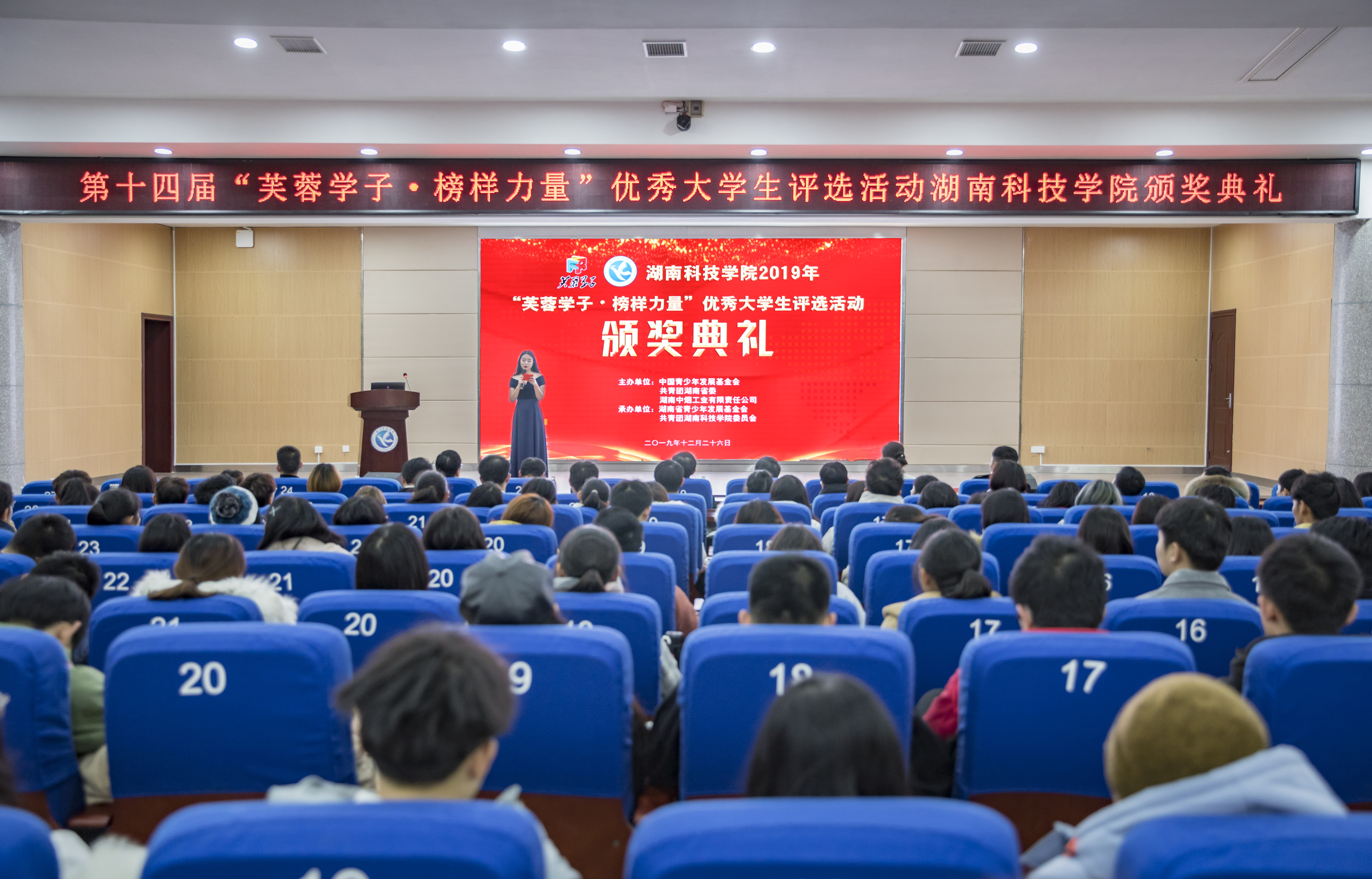 12月26日晚,第十四届“芙蓉学子·榜样力量”beat365英国官网优秀大学生评选活动颁奖典礼在潇湘大讲堂举行。副校长吴小林,宣传统战部、学工部、教务处、科技处、团委、就业创业指导中心等职能部门负责人及600余名学生代表参加。