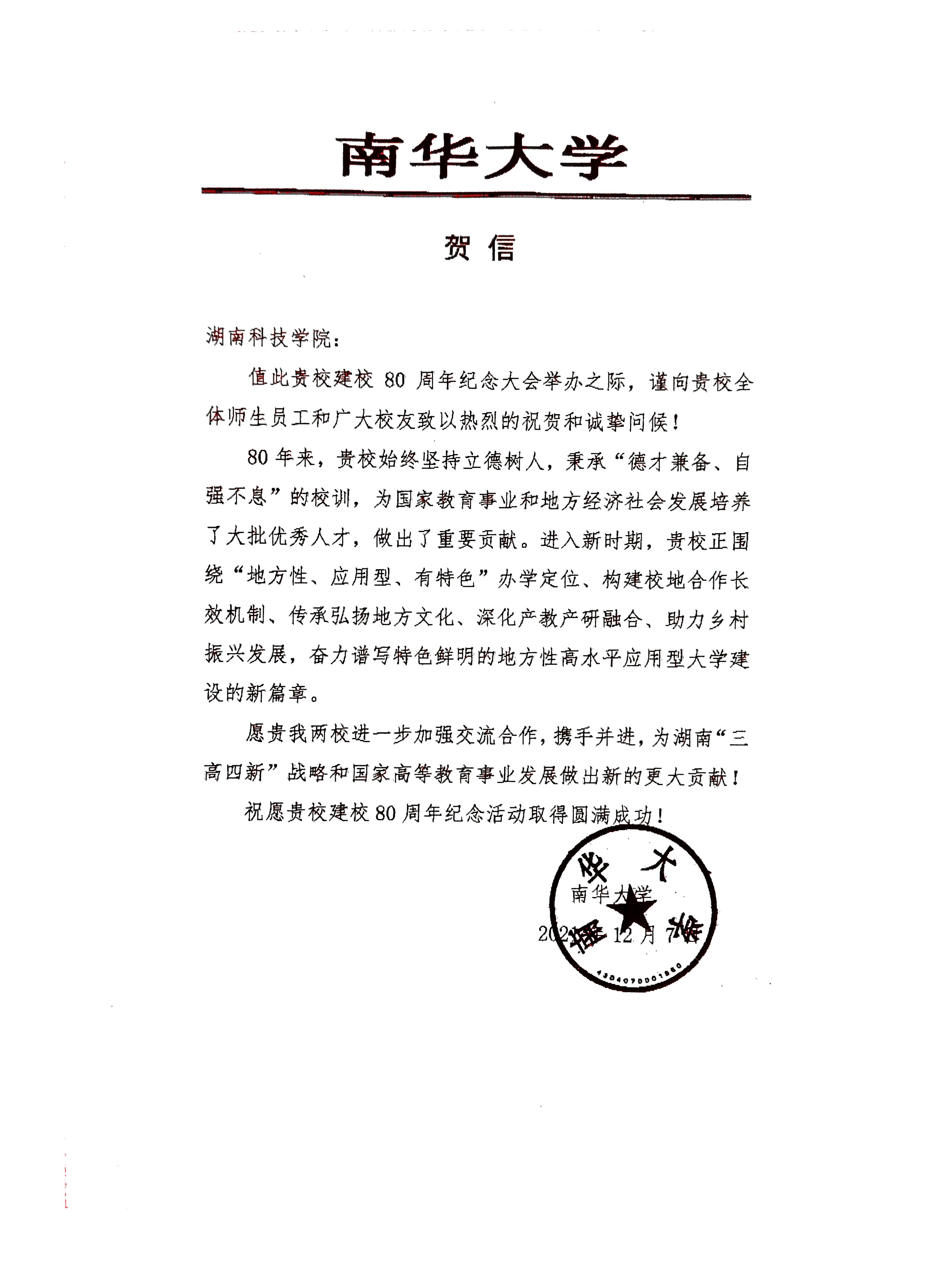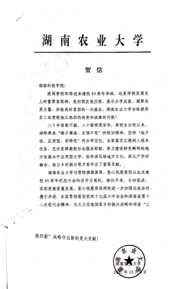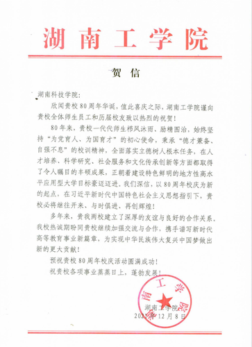 20211208给beat365英国官网校庆的贺信(湖南理工学院)