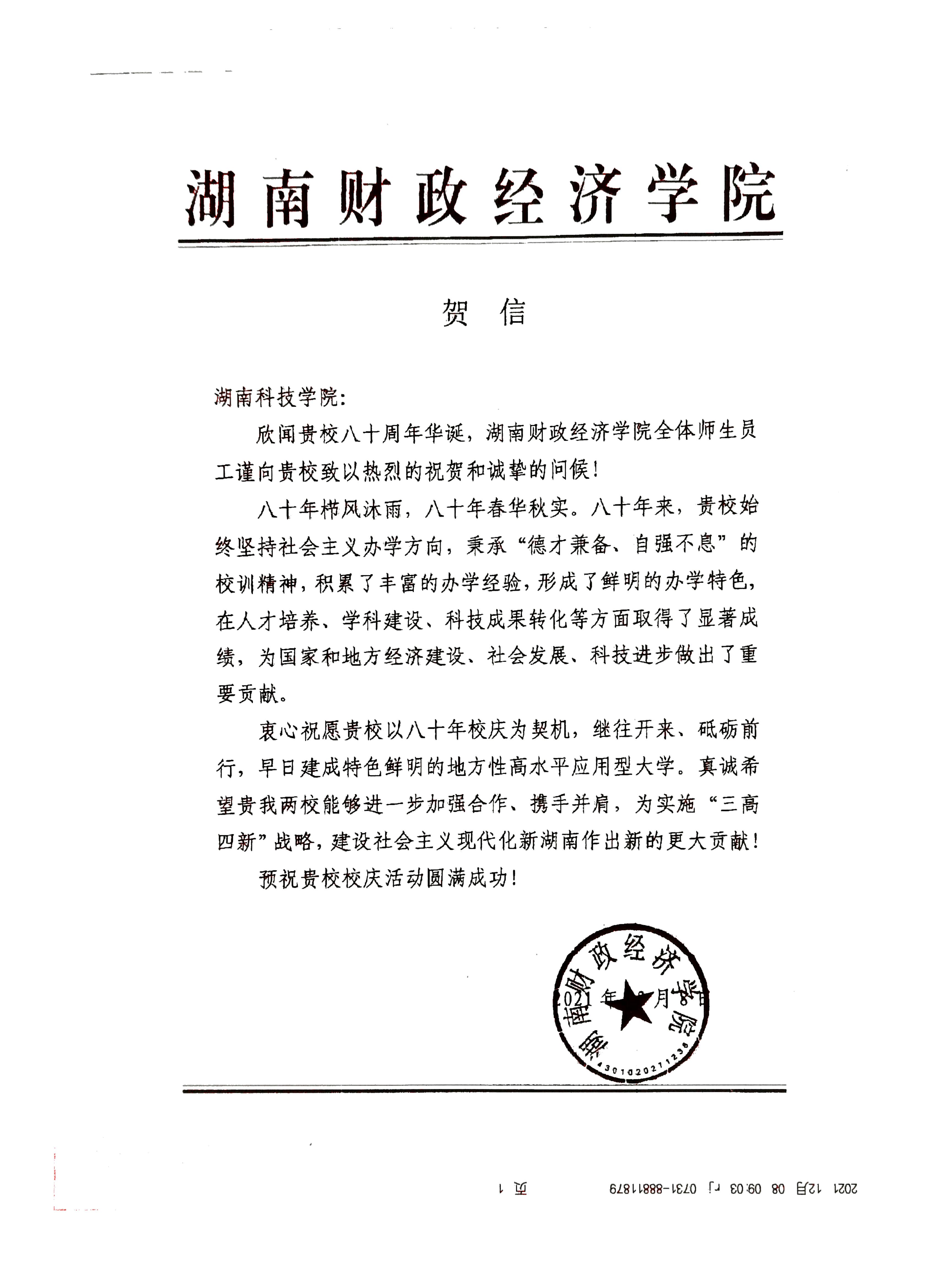 20211208给beat365英国官网校庆的贺信(湖南财政经济学院)