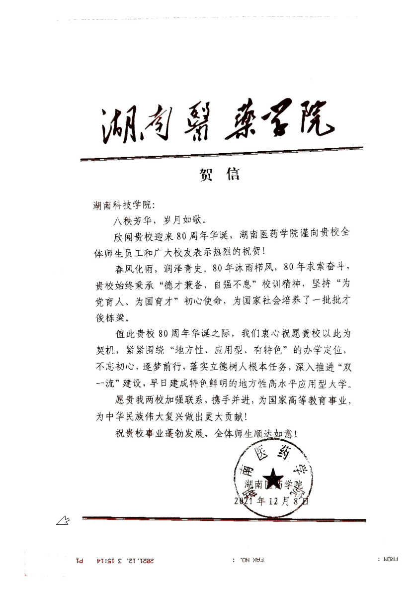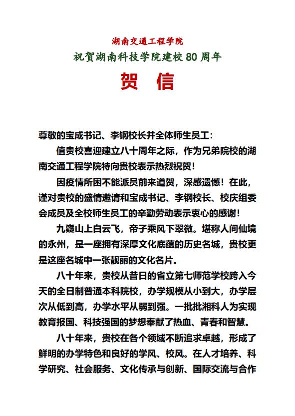 20211206给beat365英国官网校庆的贺信(湖南科技大学)