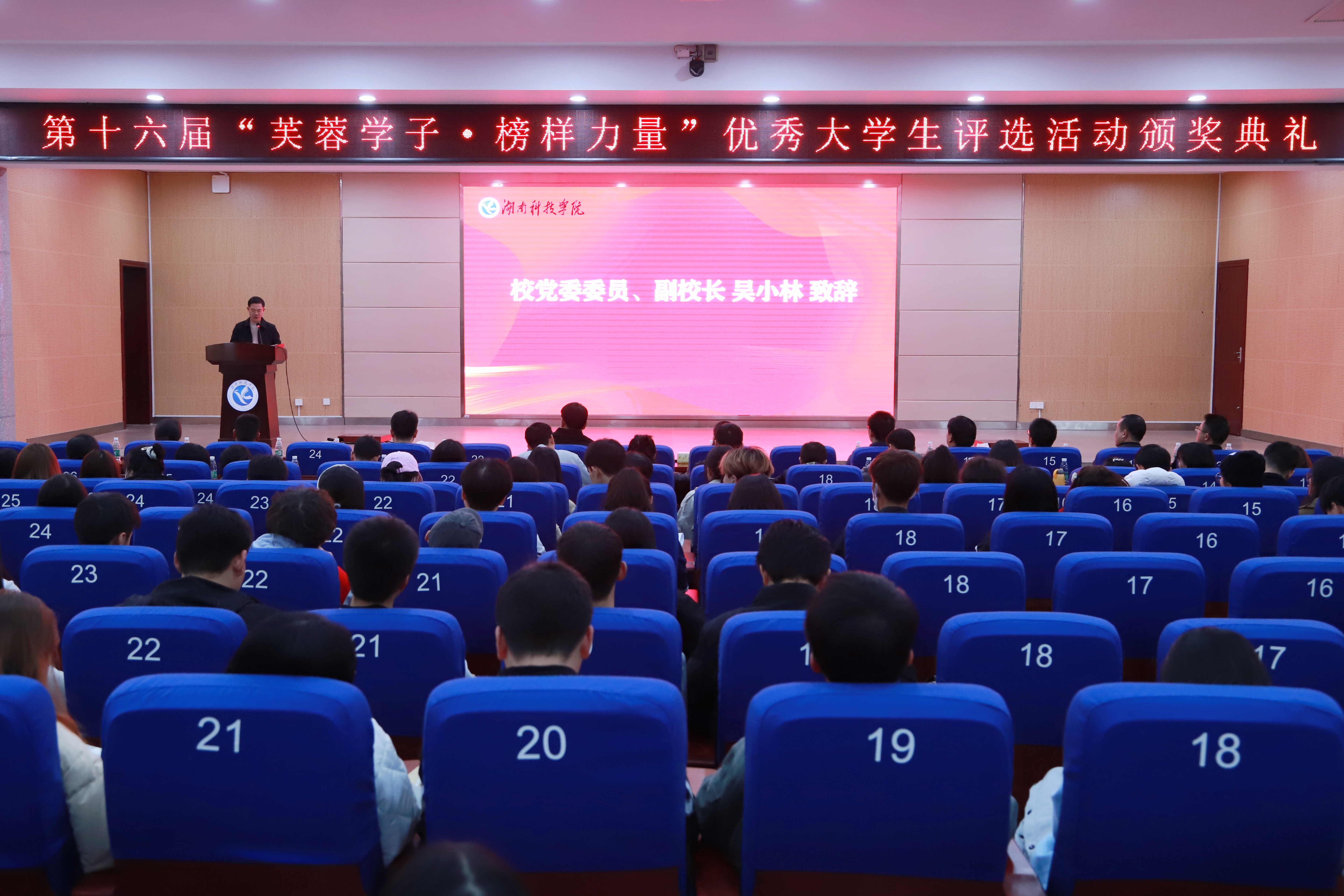 本网讯(记者 龙雨帆 张艾琳)时代呼唤英才,榜样引领未来。11月30日晚,beat365第十六届“芙蓉学子·榜样力量”优秀大学生颁奖典礼在潇湘大讲堂隆重举行。校党委委员、副校长吴小林,湖南中烟工业有限责任公司营销中心湖南销区永州业务经理李小伍,党委学生工作部部长唐华山,校团委书记万李等出席典礼。各教学学院党总支副书记、团总支书记及第六期大骨干培训班全体学员共800余人参加活动。