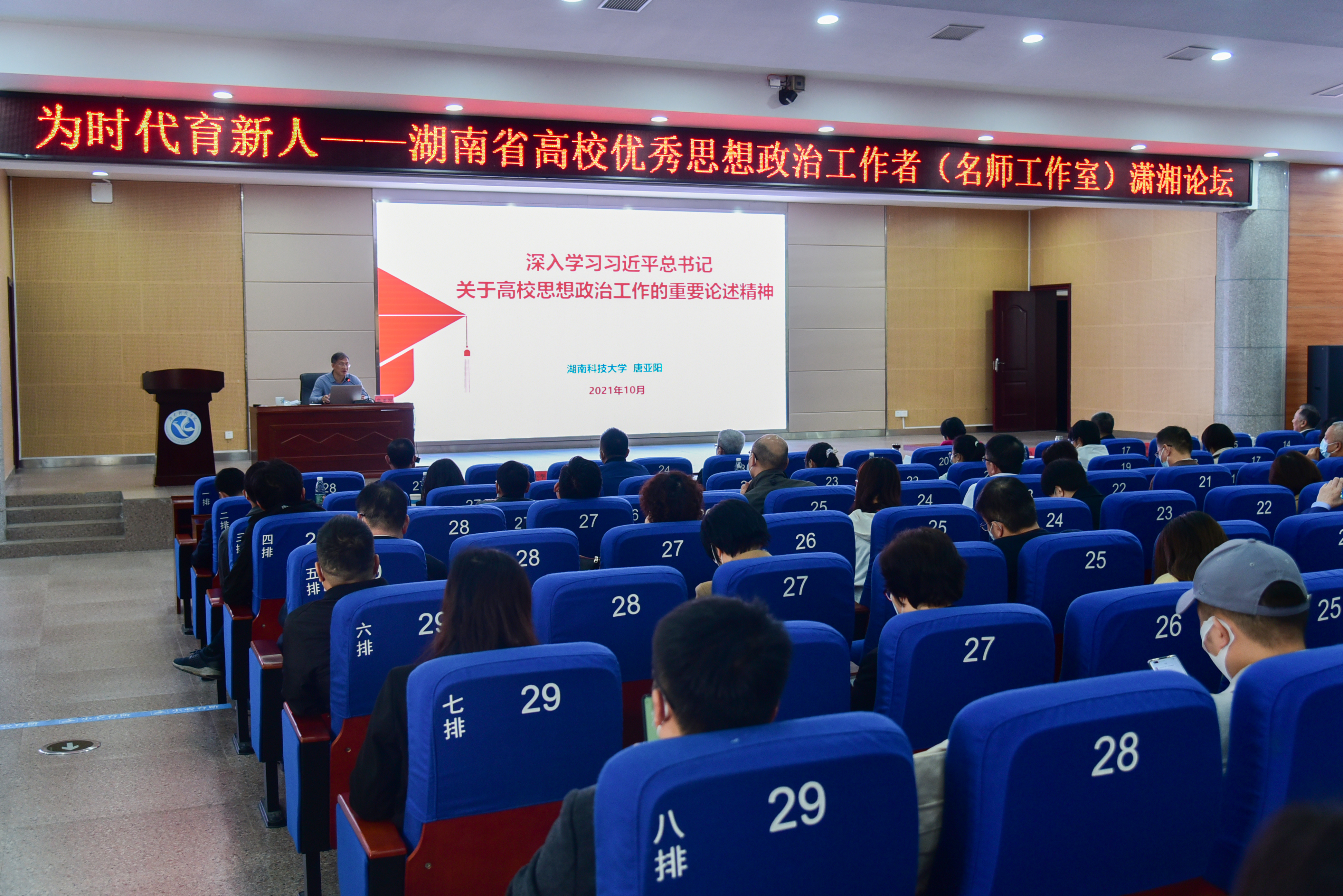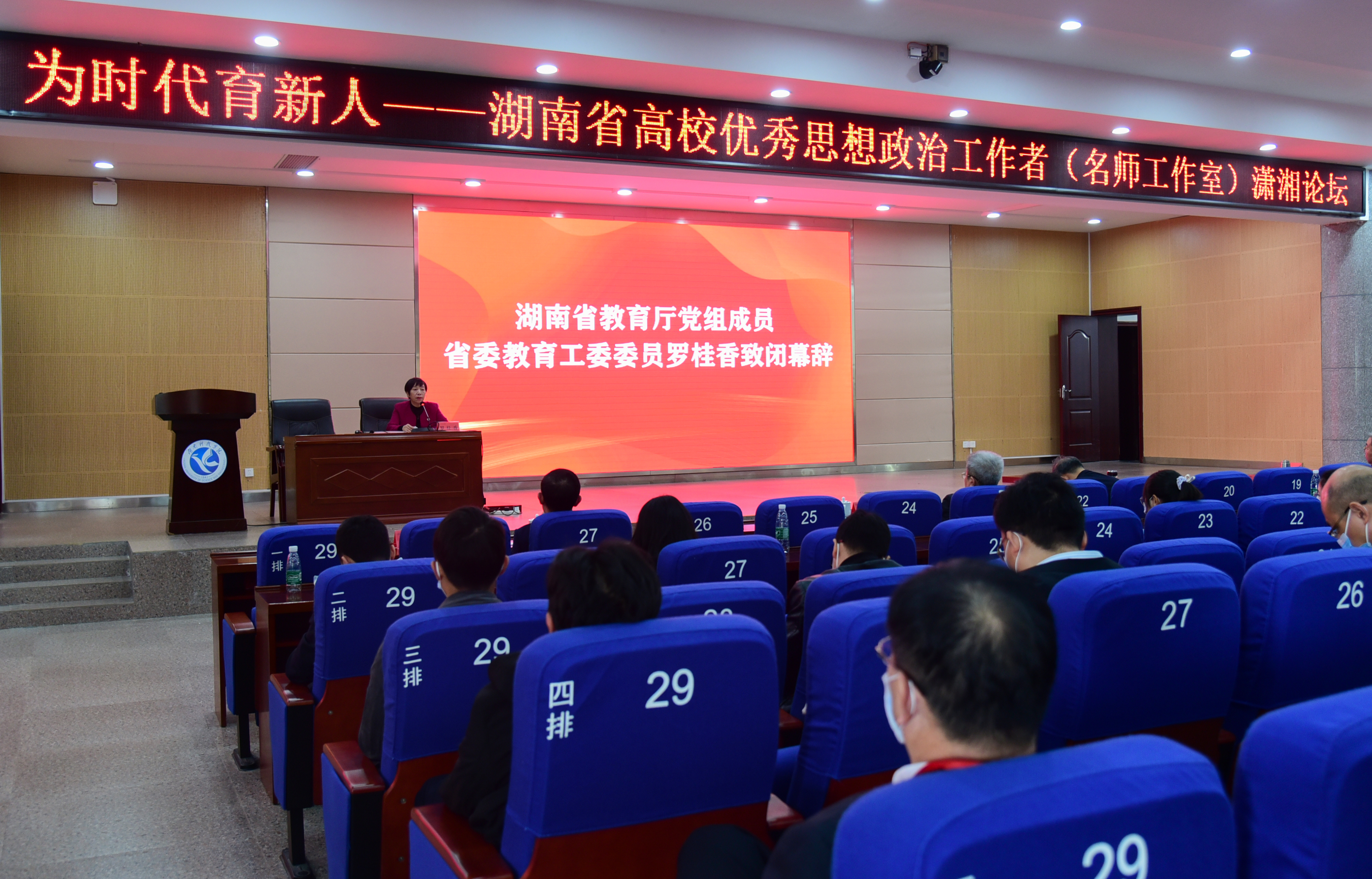 本次论坛活动由中共湖南省委组织部、中共湖南省委宣传部、中共湖南省委教育工委(湖南省教育厅)主办,beat365英国官网承办,湖南省高校思想政治教育研究会协办,旨在落实《中国共产党普通高等学校基层组织工作条例》《关于新时代加强和改进思想政治工作的意见》,系统总结湖南自2019年1月入选全国“三全育人”综合改革试点区以来高校思想政治工作队伍人才建设的理论和实践创新成果,创新实施高校思想政治工作质量提升工程,纵深推进湖南省高校“三全育人”综合改革。首场论坛为高校优秀思想政治工作者名师工作室专场,教育部思想政治工作司副司长李景升寄语论坛,湖南省委宣传部副部长胡代松、省委教育工委委员,省教育厅党组成员罗桂香等参加开幕式并讲话。北京师范大学思想政治工作研究院院长冯刚、湖南科技大学党委书记唐亚阳作主题报告。30余名高校优秀思想政治工作者名师工作室项目主持人、首届高校最美思政课教师和辅导员代表作交流发言。专家学者们结合自身思政工作实践,围绕更好落实立德树人根本任务,从扎实推进名师工作室建设、加强思政课程建设、创新思想政治教育工作方法等开展全方位、多角度探讨,着力推进教学体系向育人体系转变,着力增强思政课吸引力和亲和力,着力提升思想政治工作针对性与实效性,为培育时代新人提供新动能。